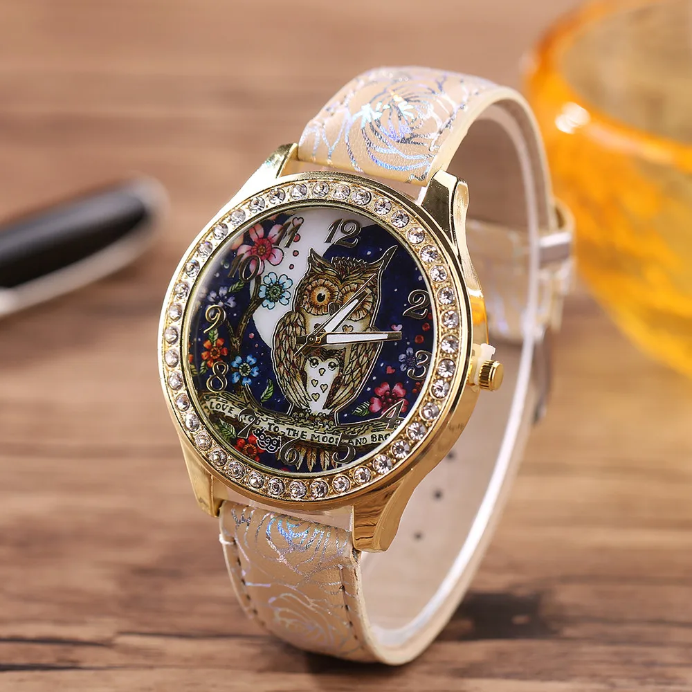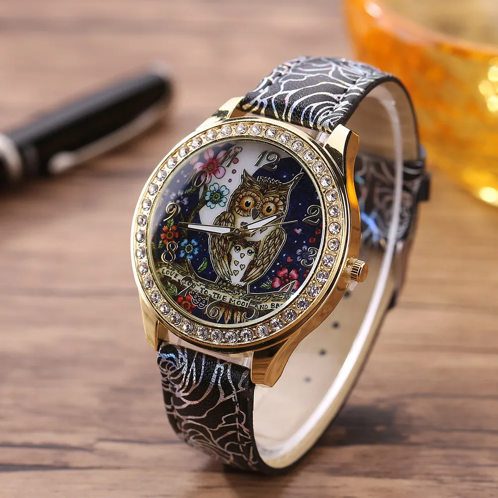 Модные женские часы 2019 мужские и женские Универсальные часы с рисунком Совы парные модели кварцевые часы с бриллиантами Женские часы Relogio Feminino