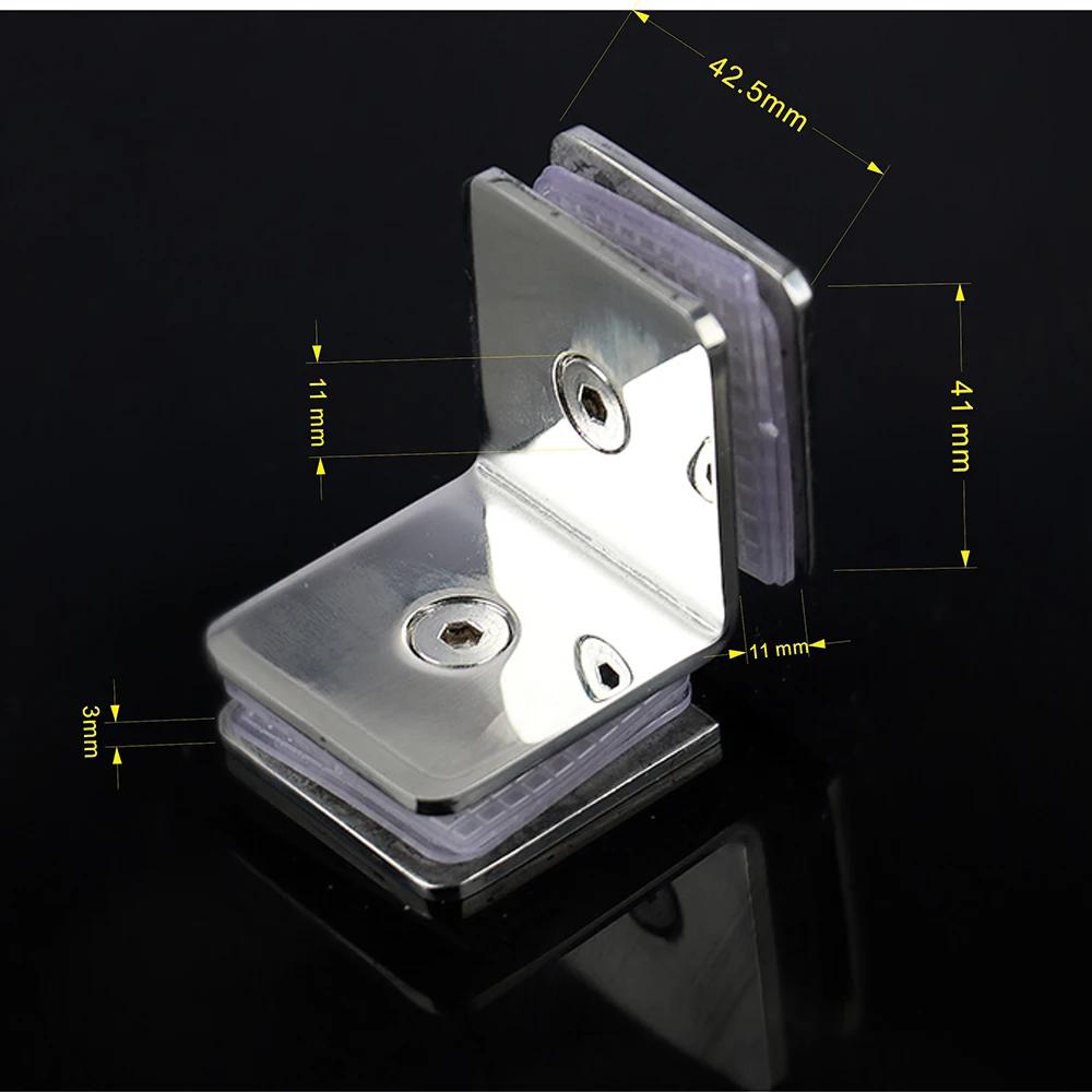 Размер: 42,5*41 мм Подходит для glass8-12 мм Материал: 304 нержавеющая сталь Поверхность: матовая/полированная Диаметр отверстия: 11 мм Цвет: серебро