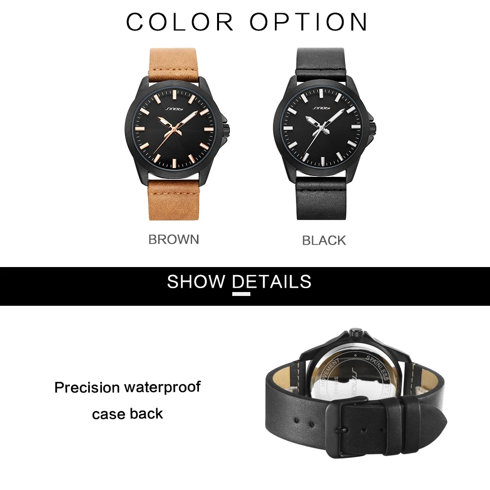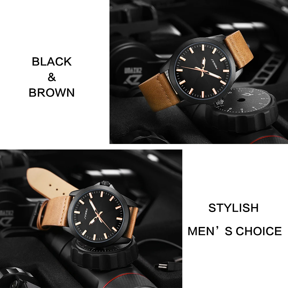 SINOBI Мужские часы Лидирующий бренд Классические Коричневые кожаный ремешок спортивные часы водонепроницаемые военные часы мужские часы Relogio Masculino