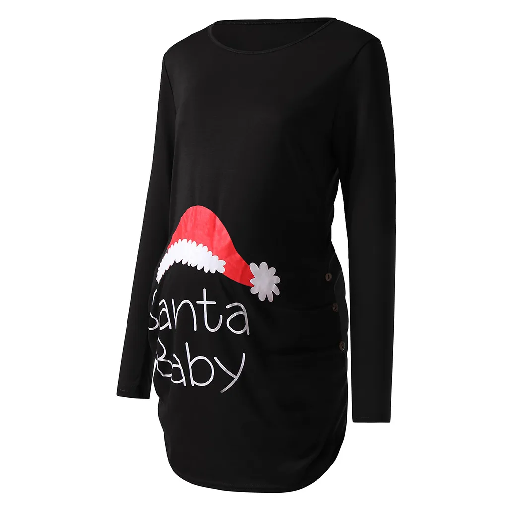 Женский Рождественский топ с длинными рукавами и рюшами, Одежда для беременных