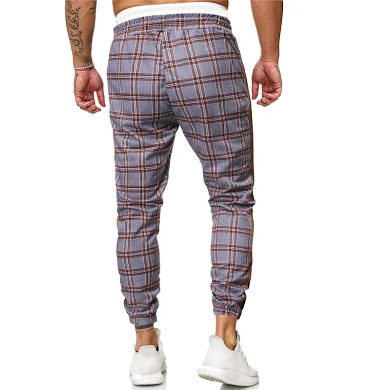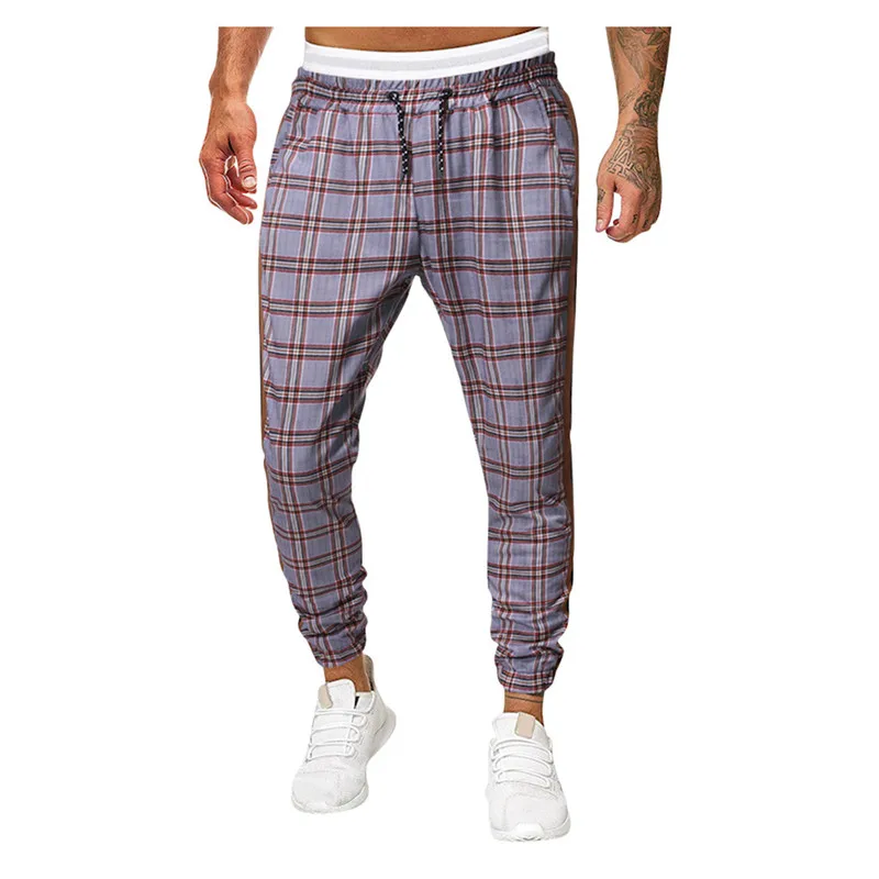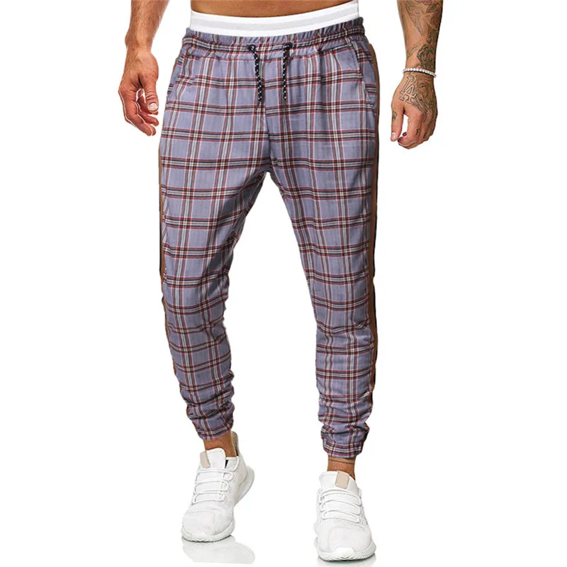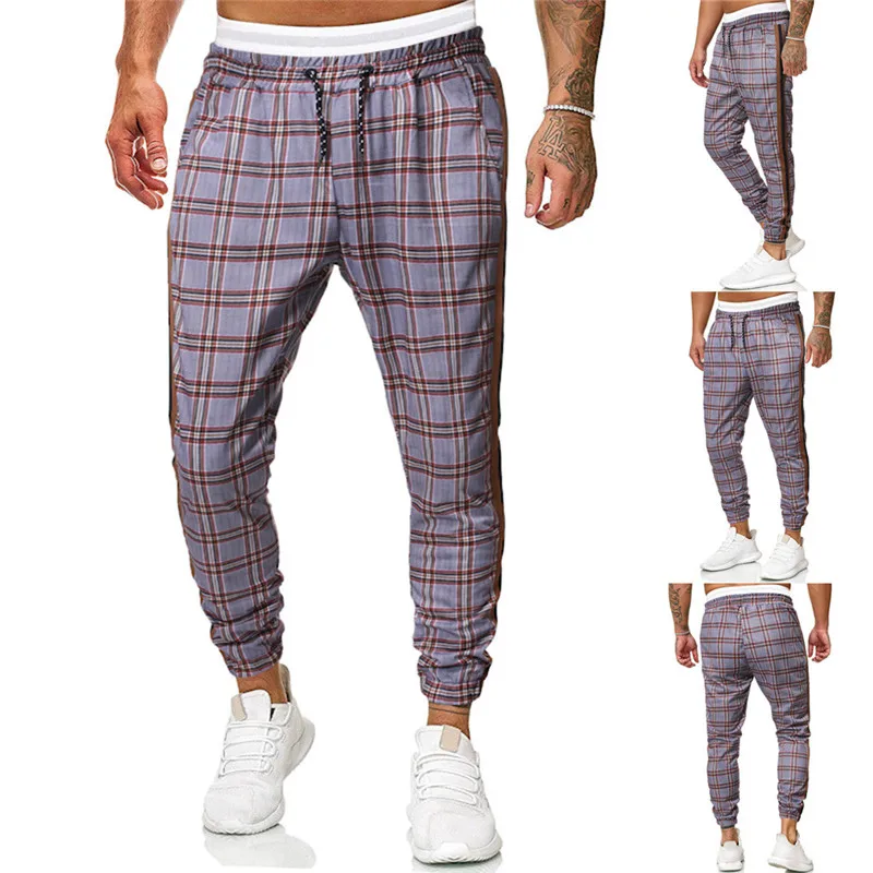 Мужские Длинные повседневные спортивные брюки, облегающие клетчатые брюки, беговые джоггеры, спортивные штаны
