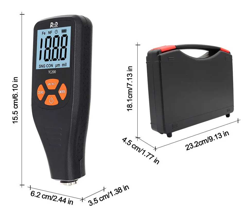 1. Fe-индикатор магнитной подложки: сталь/железо 2. NF -- Немагнитный индикатор подложки: медь/алюминий 3. Автоматическое выключение флага, автоматическое выключение в течение 5 минут без работы 4. Индикатор уровня заряда батареи 5. Измеренный дисплей чтения 6. SNG: одиночный режим измерения 7. CON: Режим непрерывного измерения 8. Единица измерения: мил, мил 9. ВКЛ/ВЫКЛ 10. Мкм/мил: клавиша переключателя блока, клавиша сброса системы (нажмите и удерживайте более 3 с) 11. Ноль: очистка дисплея, когда SNG показывает; Используется для калибровки, когда CON показывает. 12. Режим: переключатель SNG/CON; SNG показывает, одноточечный режим; CON показывает, непрерывный режим 13. Противоскользящий слот 14. Зонд 15. V-паз 16. Батарейный отсек