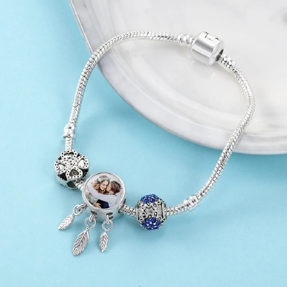 Индивидуальные фото очаровательные бусины 925 пробы серебро с кубическим цирконием подходят браслеты Подвески оригинальные ювелирные изделия