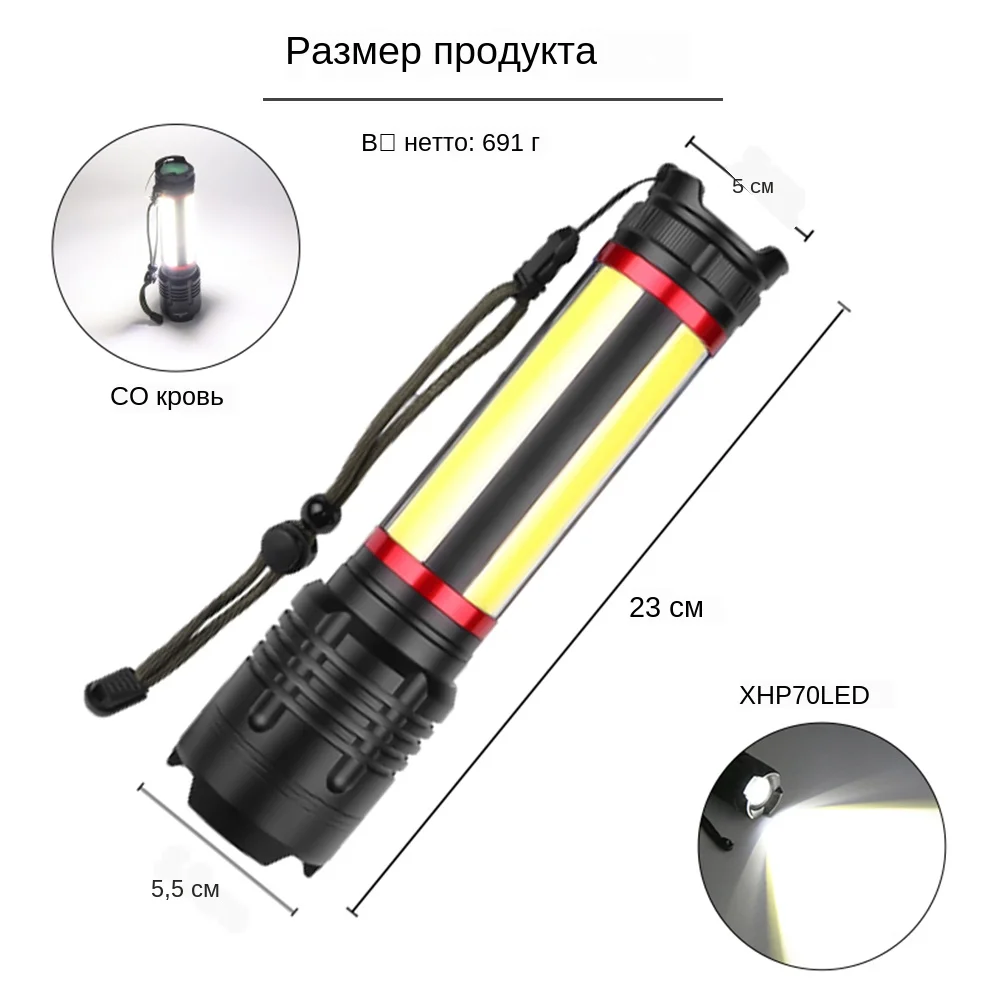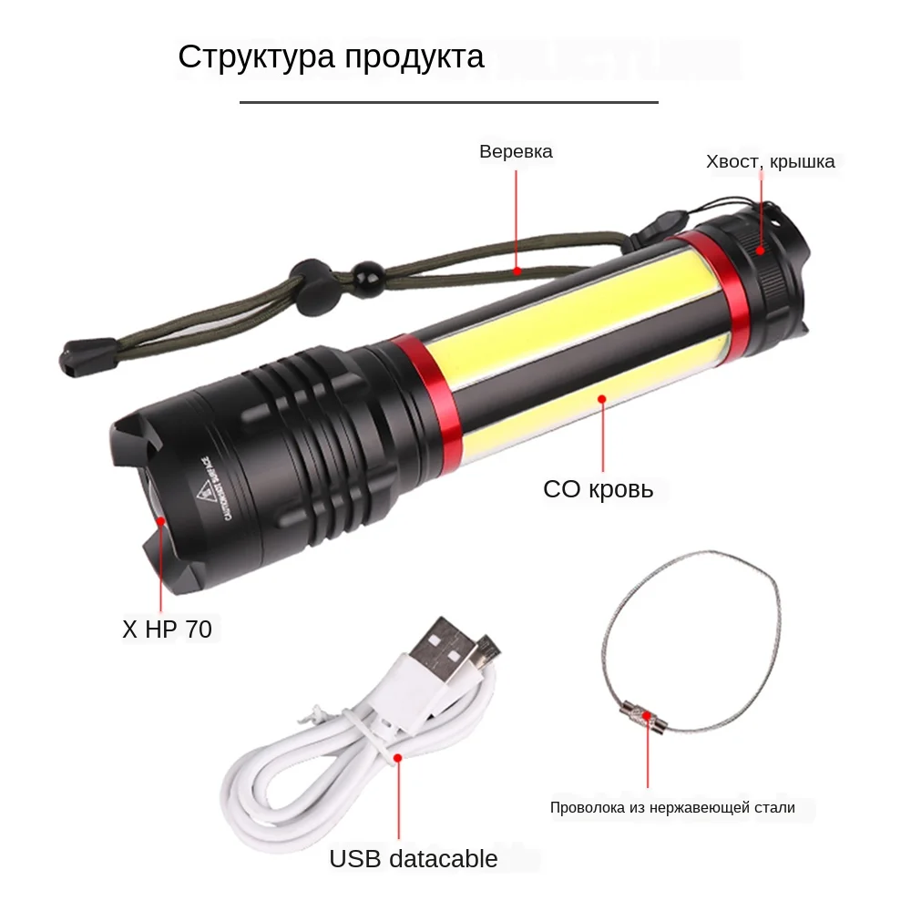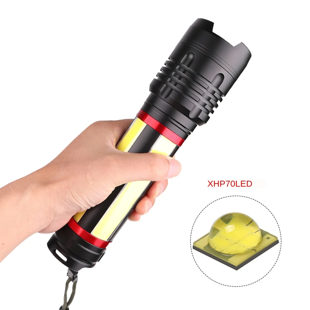 Светодиодный фонарик, масштабируемый светодиодный фонарь XHP70 COB USB Перезаряжаемый водонепроницаемый фонарь, ультра яркий светодиодный фонарик XHP70 COB