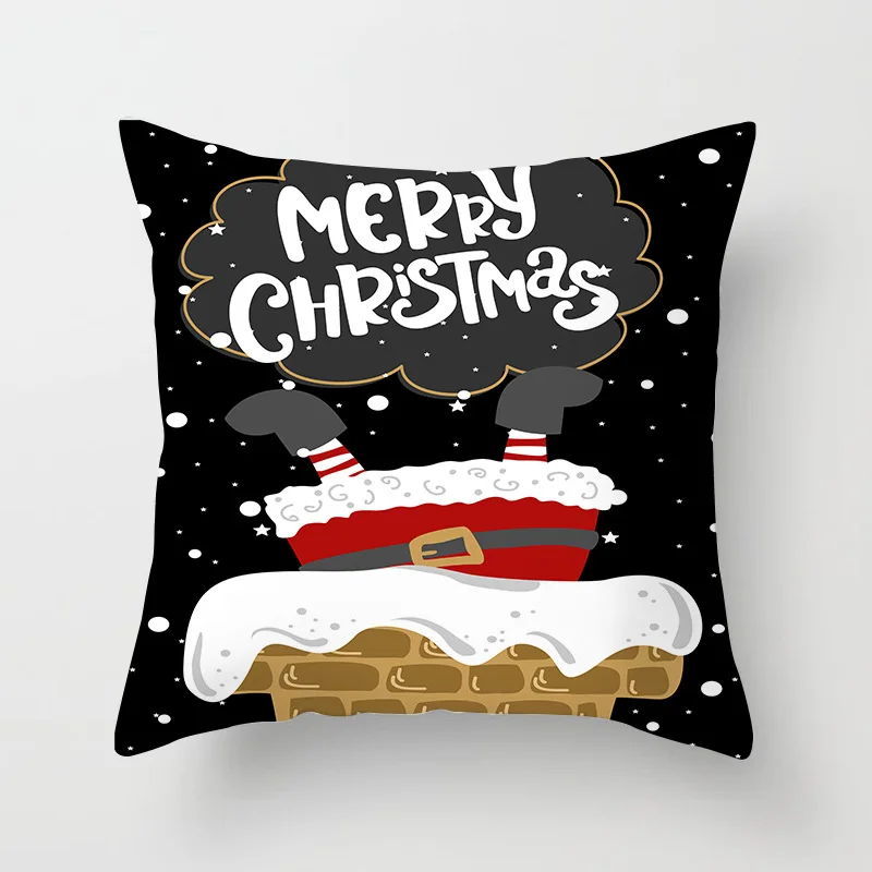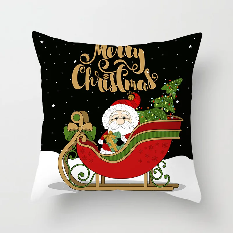 Односторонний полиэстеровый черный декоративный чехол для подушки с рисунком Рождественский подарок, снеговик, Санта-Клаус, подушка с оленем, двусторонняя печать, полиэстер, черный декоративный чехол для подушки с рисунком, рождественский подарок, снеговик, Санта-Клаус, наволочка с оленем