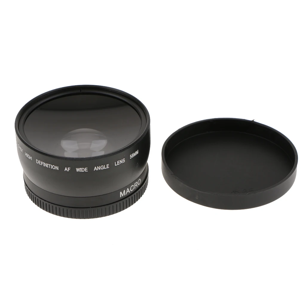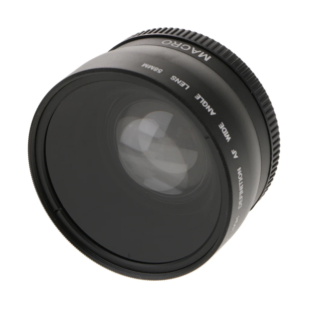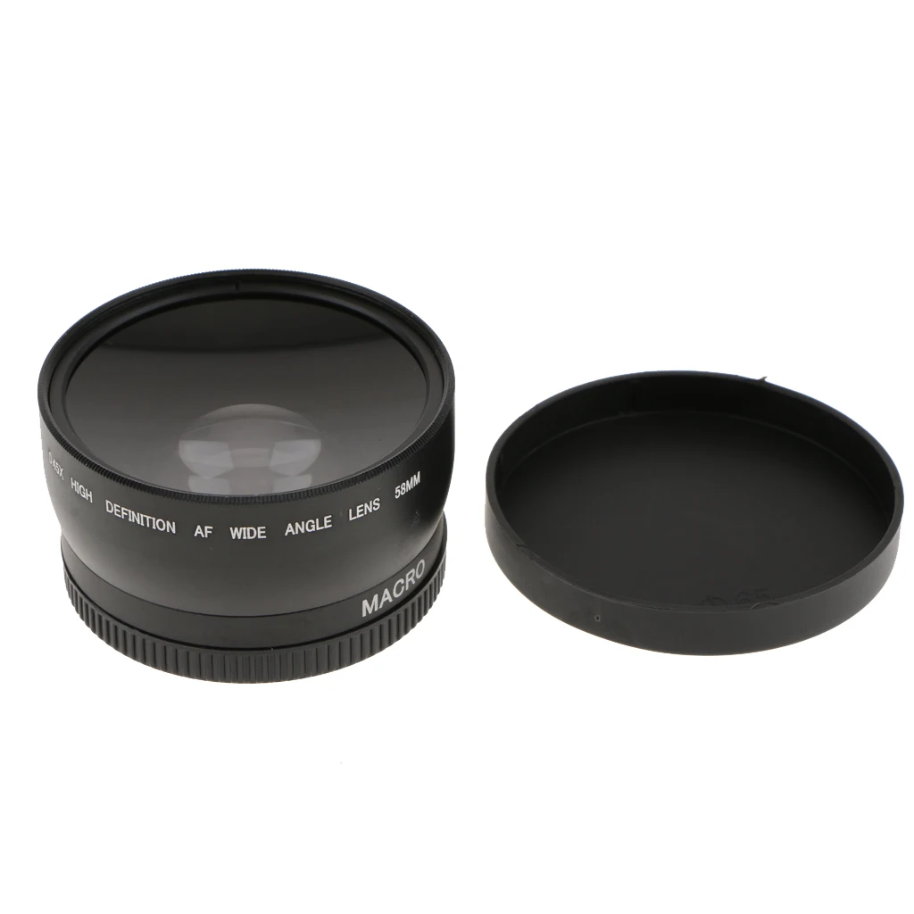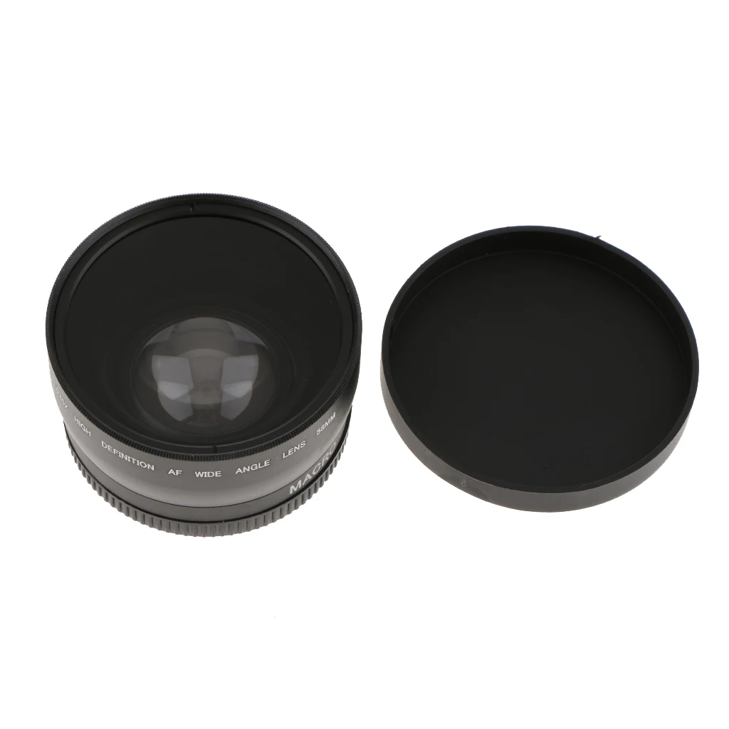 Широкоугольный объектив 58 мм 0,45x со съемным макрообъективом и крышкой объектива и сумкой для переноски.