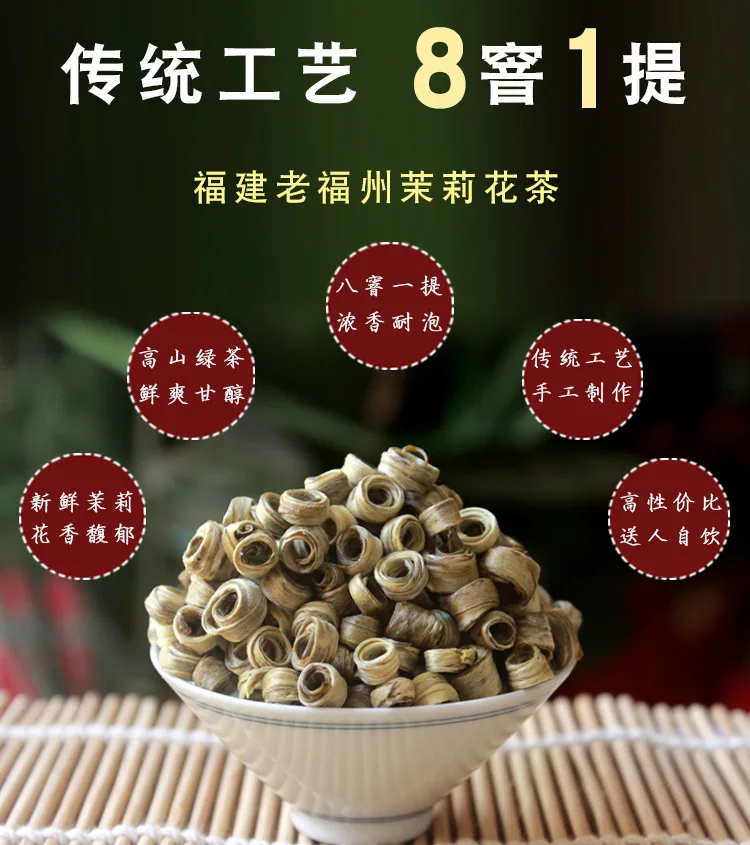 Кольцо для дочери Jasmine производится в провинции Юньнань и Фуцзянь. Он относится к ароматному чаю. Он изготовлен из высококачественного зеленого чайного сердечника. Он тщательно изготавливается вручную. Сохраняет свежие зеленые характеристики сырых листьев. Он имеет круглую форму, высокий вкус, отличное качество, уникальную форму и высокую художественную ценность. Особенно ручной чай делает его уникальным по внешнему виду, аромату и вкусу. Чистые Листья супа белые и очень милые.