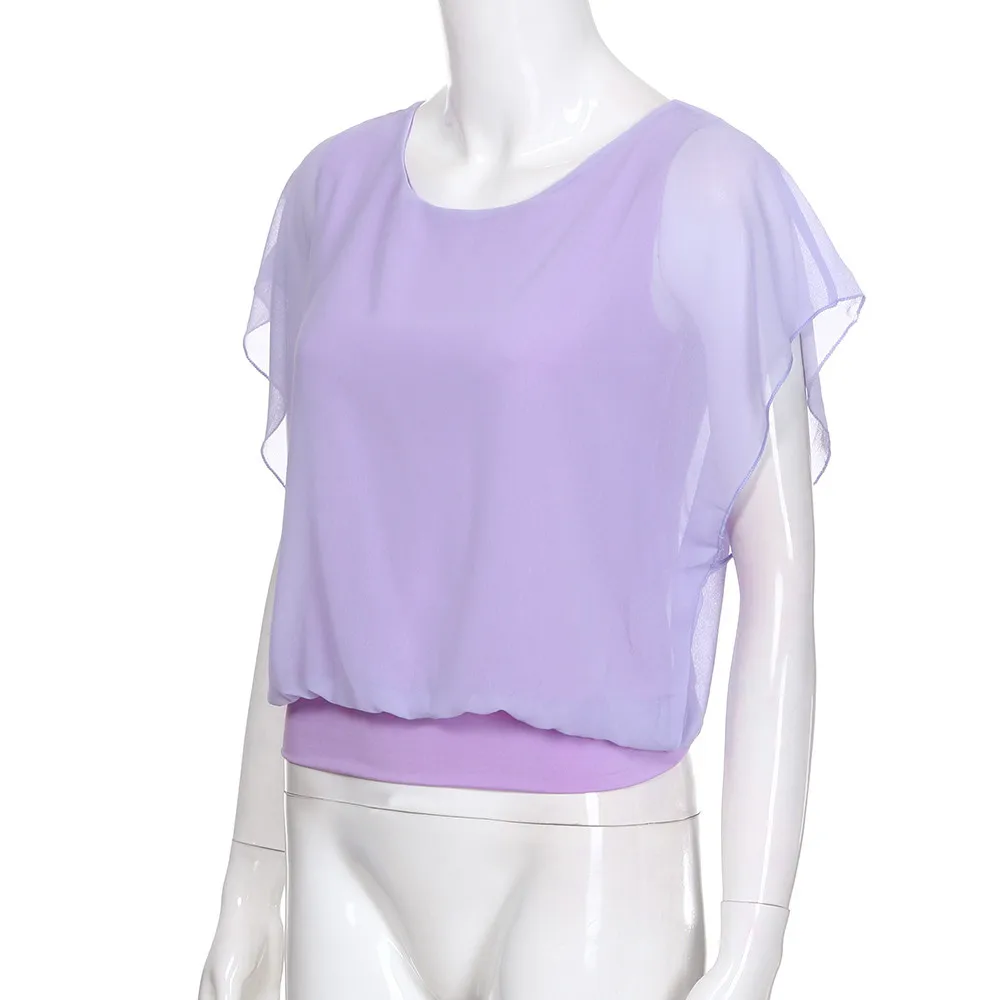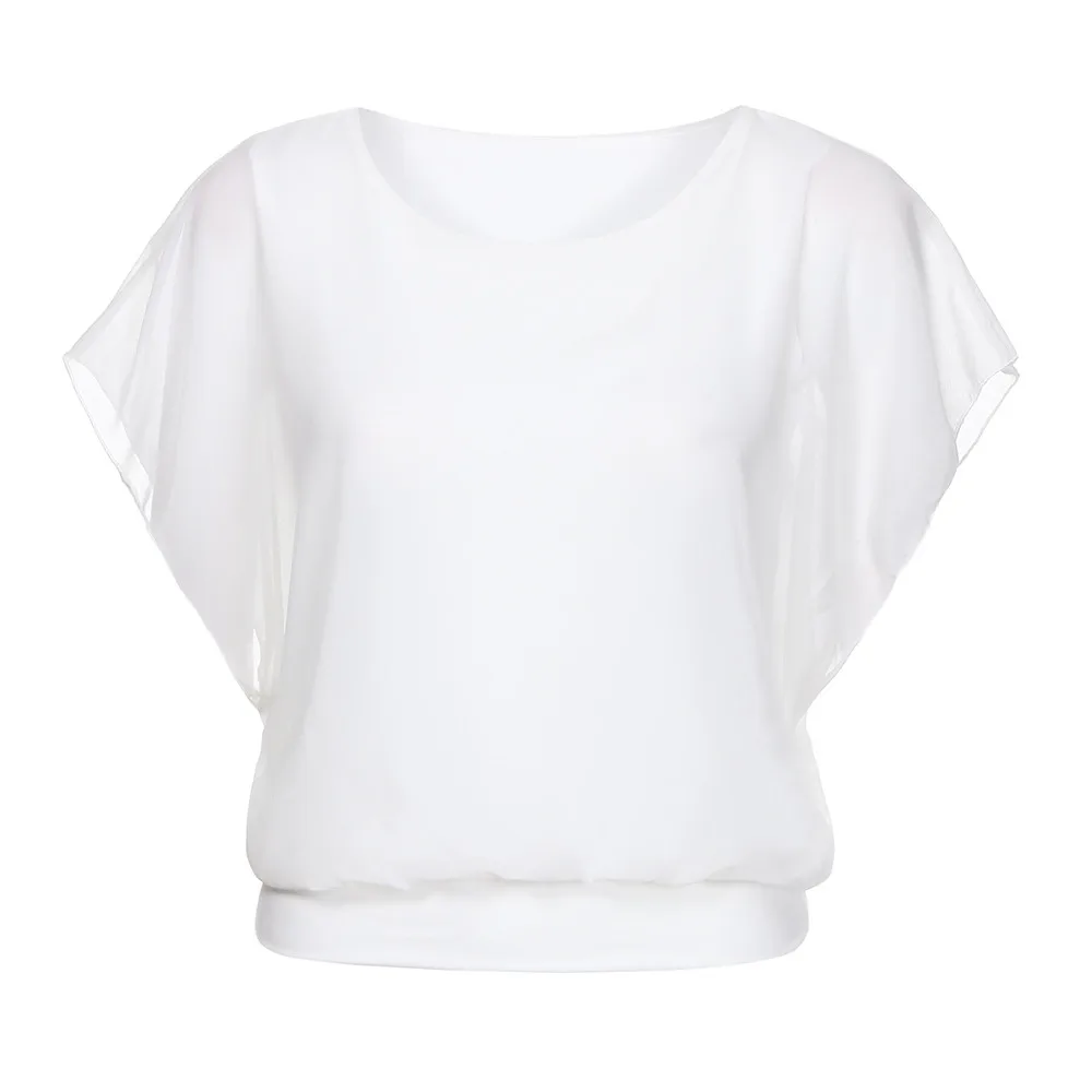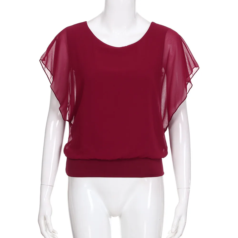 Женская Свободная Повседневная шифоновая блузка с коротким рукавом и рукавом летучая мышь