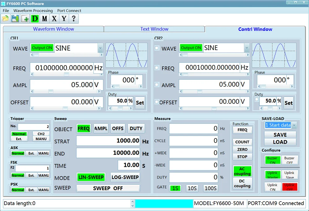 Синус, квадрат (рабочий цикл регулируется), пульс (ширина импульса и время цикла можно установить точно), треугольник/пандус, Пилообразная волна, CMOS, четыре канала TTL, DC, половина волны, полная волна, позитивный шаг, обратная ступень, положительная ступень, обратная сила, пульс Лоренца, мультитон, шум, ЭКГ, Трапециевидный пульс, Синк пульс, узкий пульс, Гаусс белый шум, AM, FM и другие 64 набора клиентской формы сигнала. |