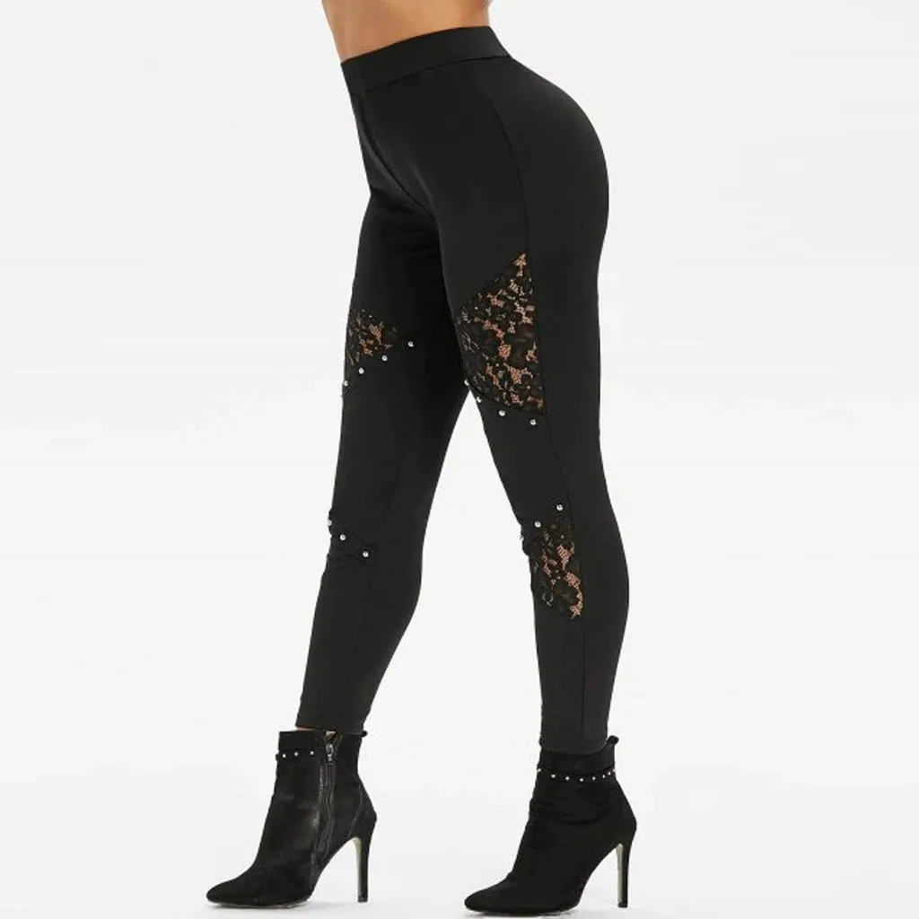 Особенности: эластичная резинка на талии, перспектива, Шипованный цветок, кружево, соединение,Длинные штаны,Подходит для всех сезоновБрюки, повседневные брюки.