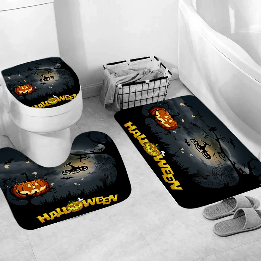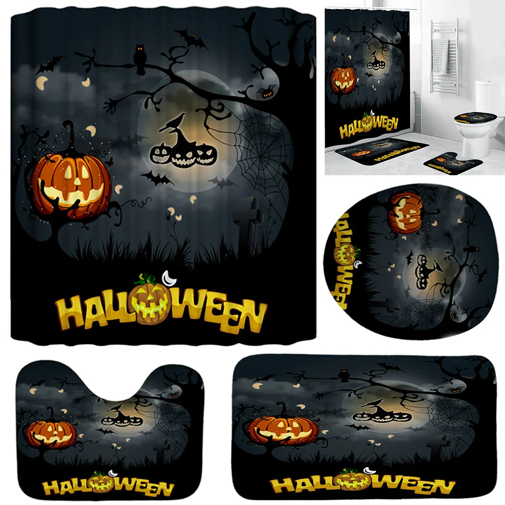 4 шт., занавески для душа на Хэллоуин, нескользящий коврик для ванной, базовый ковер, чехол для унитаза, подушка, набор, украшение для ванной на Хэллоуин