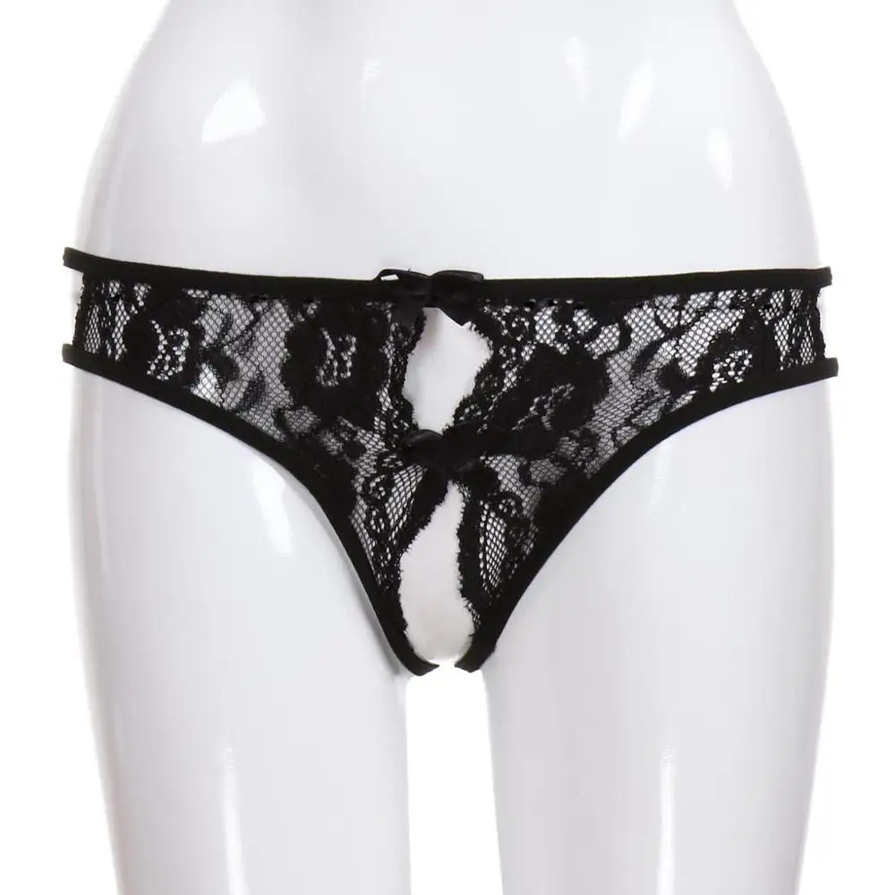 Женские сексуальные кружевные черные трусы с открытой промежностью и бантом, g-стринги, нижнее белье