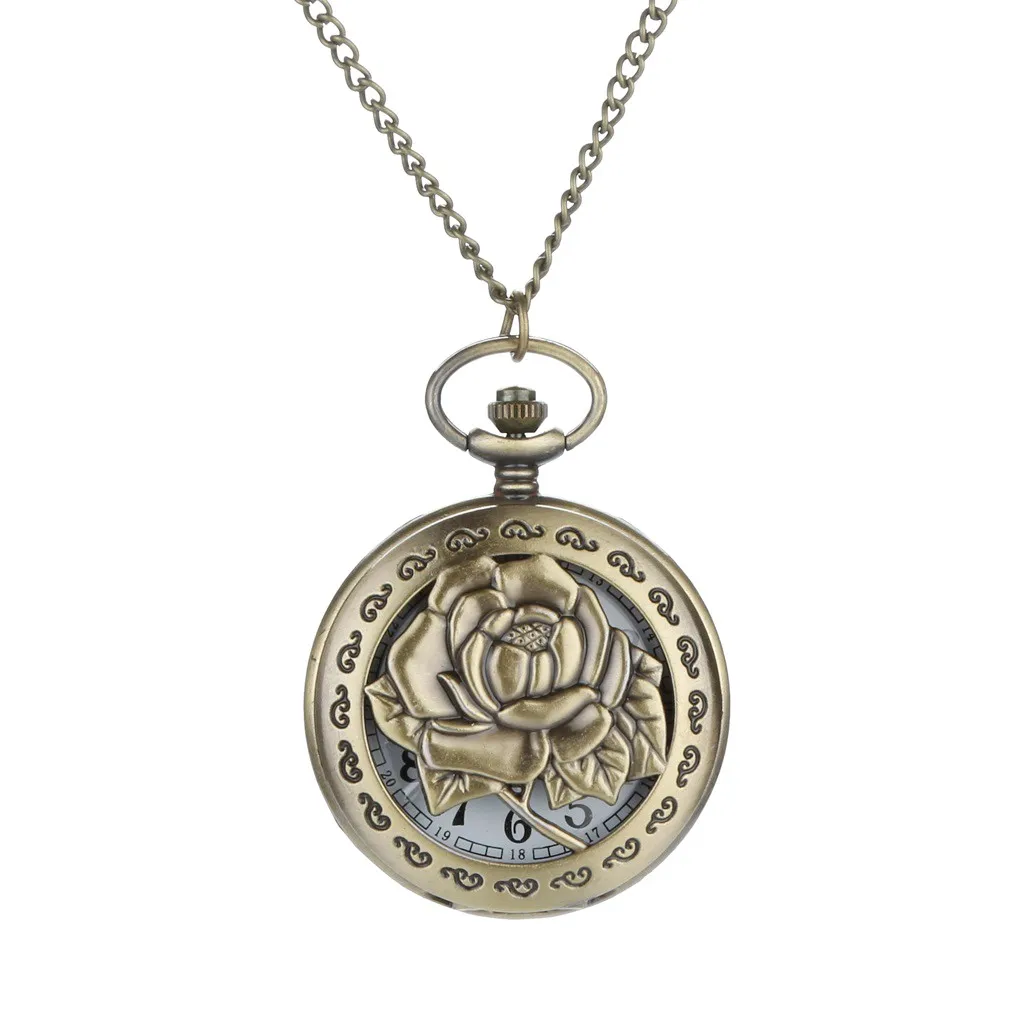 Винтажный персонализированный узор кварцевые римские цифры карманные часы цепь антикварные ювелирные изделия кулон ожерелье лучший подарок черный #10