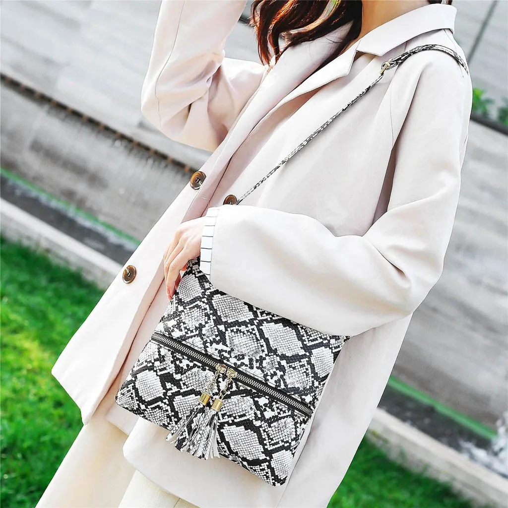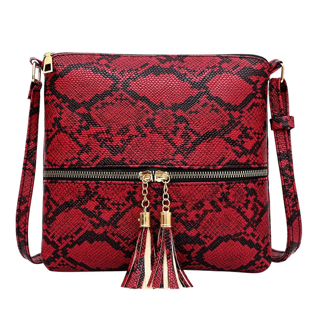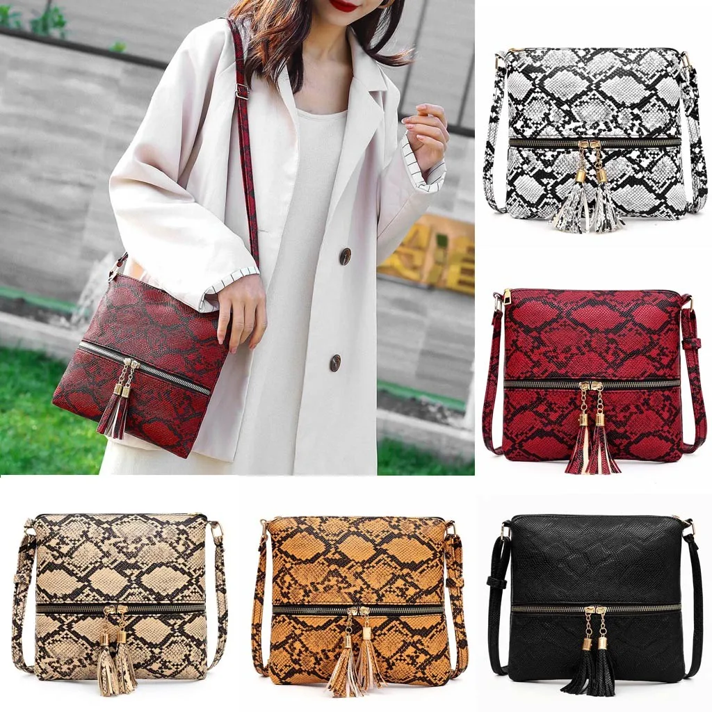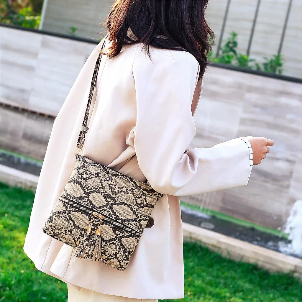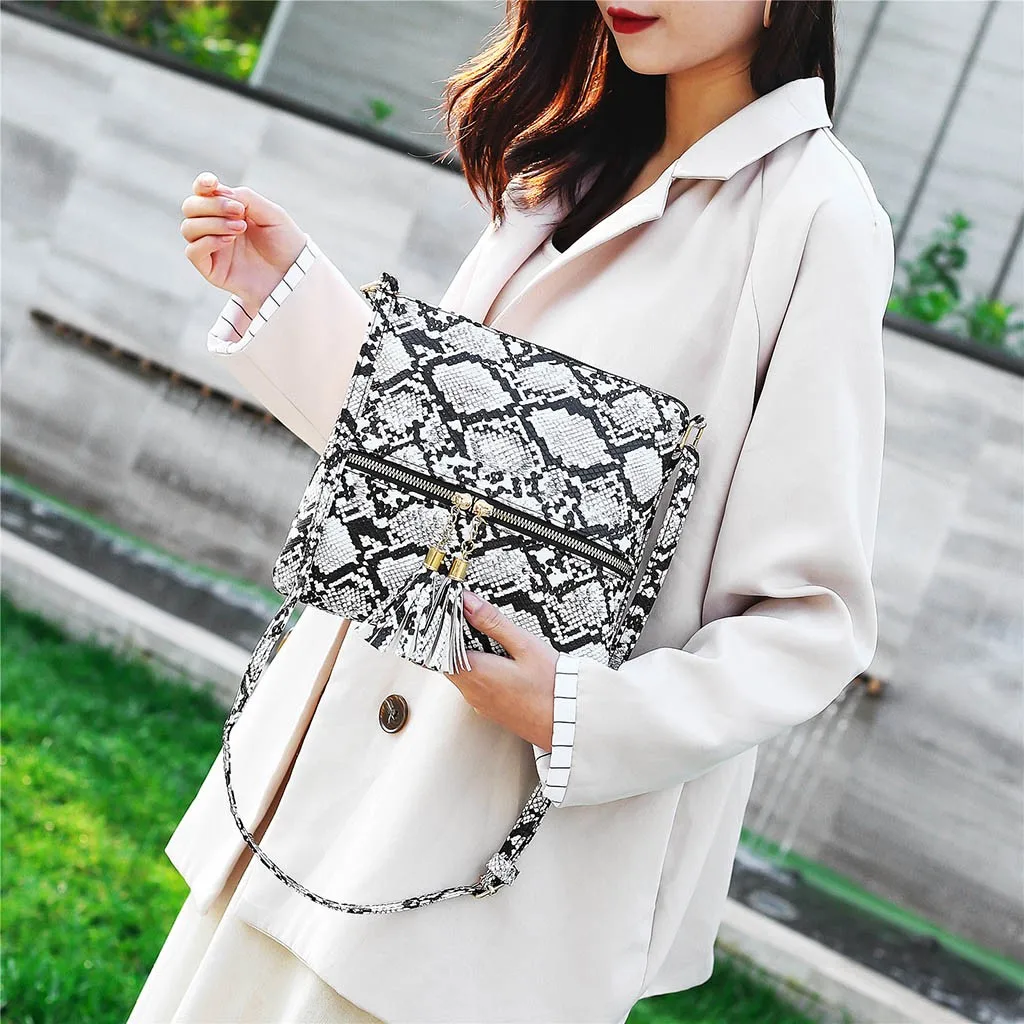 Модная женская сумка-мессенджер на молнии с кисточками и принтом змеи сумка через плечо
