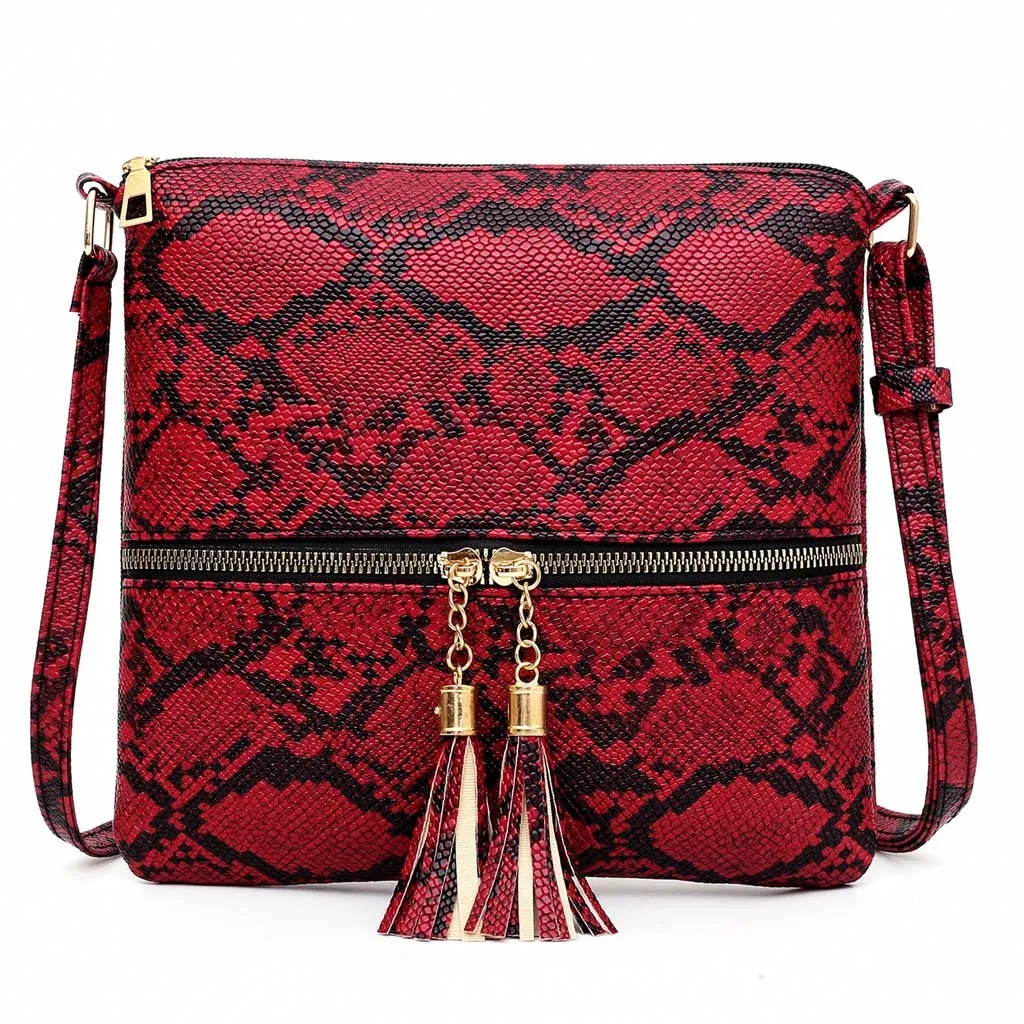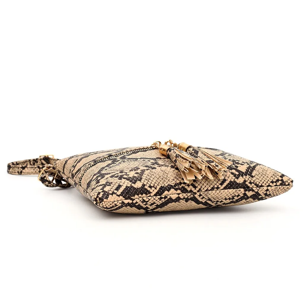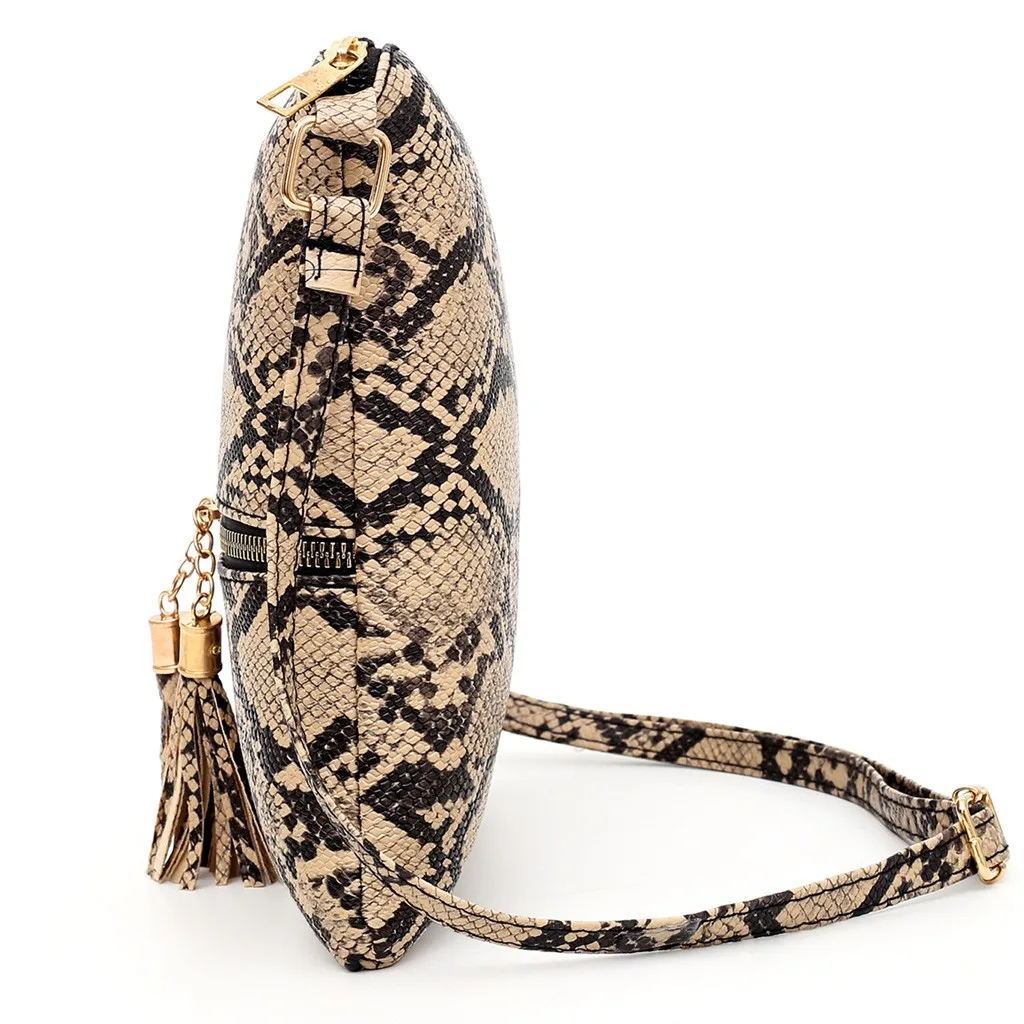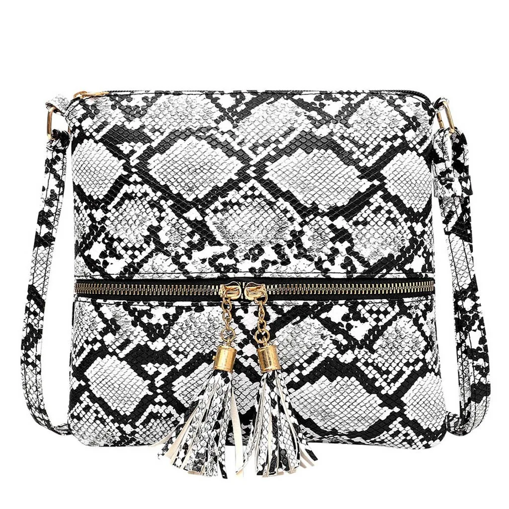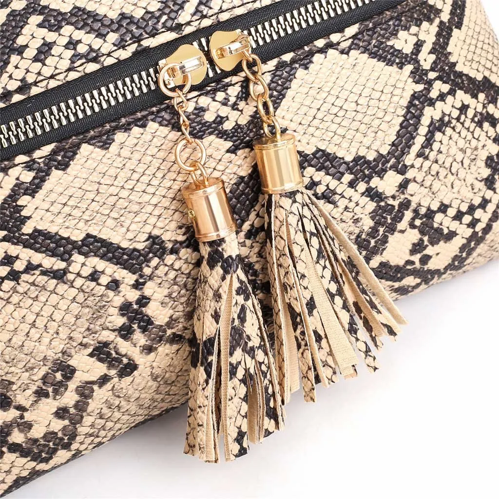Модная женская сумка-мессенджер на молнии с кисточками и принтом змеи сумка через плечо