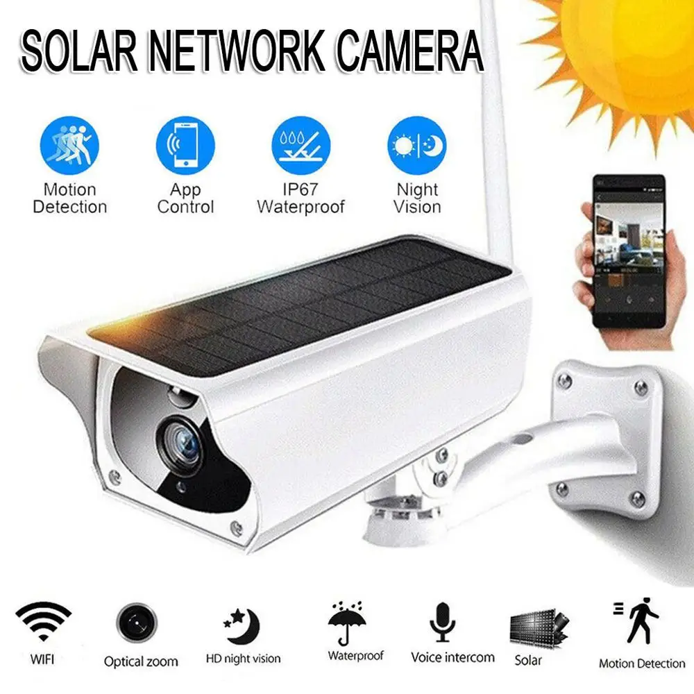 Особенности Встраиваемая солнечная панель, встроенная технология перезарядки аккумуляторов, двойная мощность (поставляется с 2 аккумуляторами 18650) Настройте устройство через 2,4 ГГц беспроводной сети (Wi-Fi 5 ГГц WI-FI не подходит) Поддержка обнаружения движения PIR, push-сигнал тревоги на мобильный телефон Поддерживает мобильный телефон и обнаружение ПИР, пробуждение Поддержка локальной записи смартфона, запись видео, воспроизведение Поддержка интеллектуальное подключение Встроенный микрофон и динамик, поддержка двустороннего аудио, поддержка переключателя высокой/стандартной четкости Максимальная поддержка 64G tf-карты (не стандартный) Использование видео для домашнего наблюдения, мониторинг в режиме реального времени в солнечной сети, видео, воспроизведение Технические характеристики Материал: металл Цвет: белый, черный Размеры: 18.5x8x8cm Вес: 0,7 кг Посылка содержание 1 x сетевая камера на солнечной энергии 1 x Антенна 1 x Руководство пользователя Монтажный кронштейн-1 шт. 1 x Монтажный винт, посылка