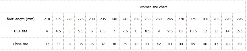 Примечание: номер обуви на подошве-это китайский размер или длина стопы не европейский размер, например, вы выбираете американский размер 8,5 = 39 европейский размер, Я пришлю вам 41 китайский размер (США 8,5 = 39 евро = 41 китайский = 25,5 см длина стопы), который подойдет вам. | |