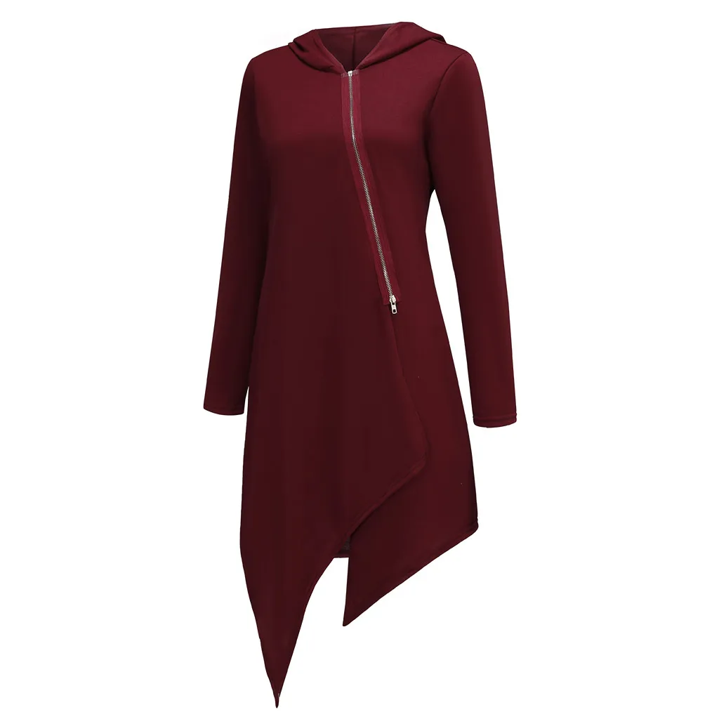 Женская однотонная толстовка с капюшоном на молнии с длинным рукавом, пуловер, топы, рубашка