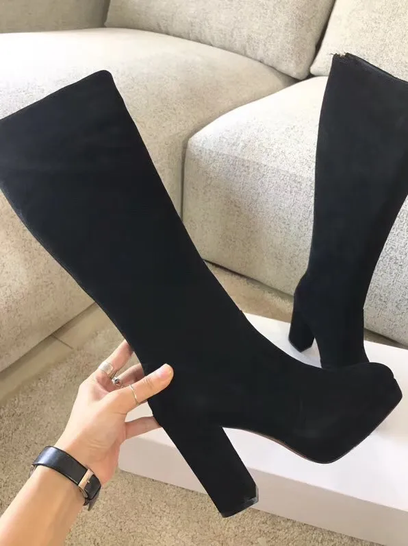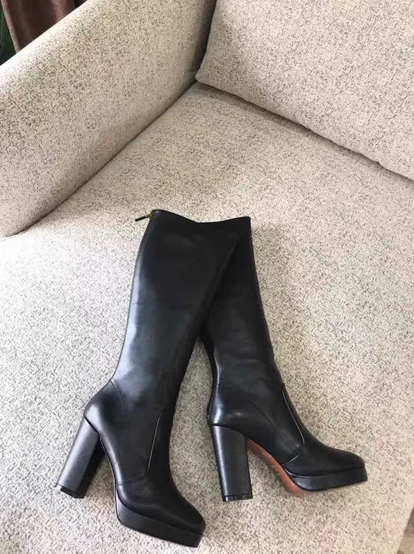 Женские высокие сапоги до колена из натуральной кожи на водной платформе, 2019