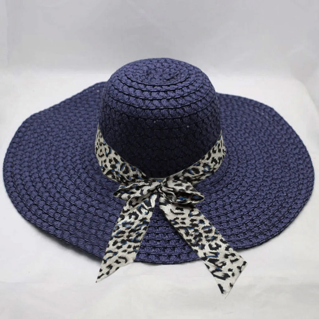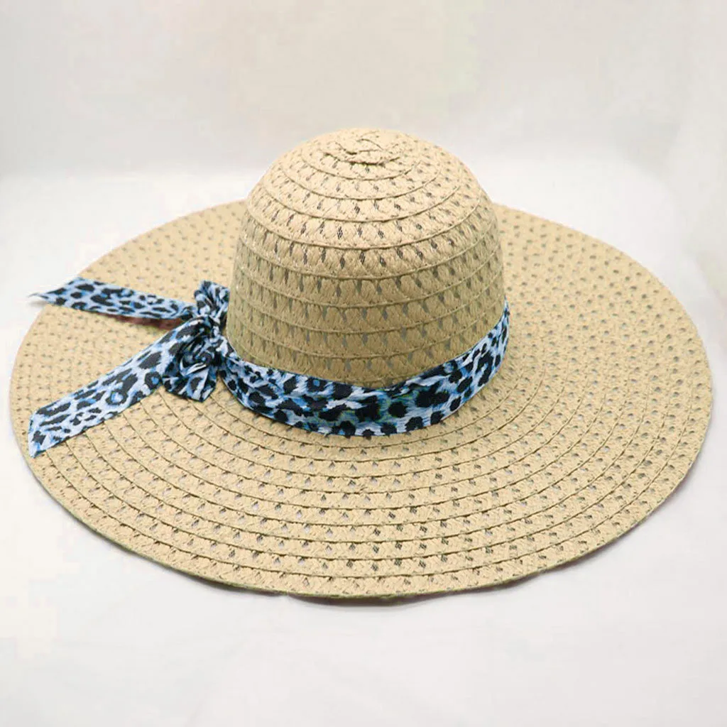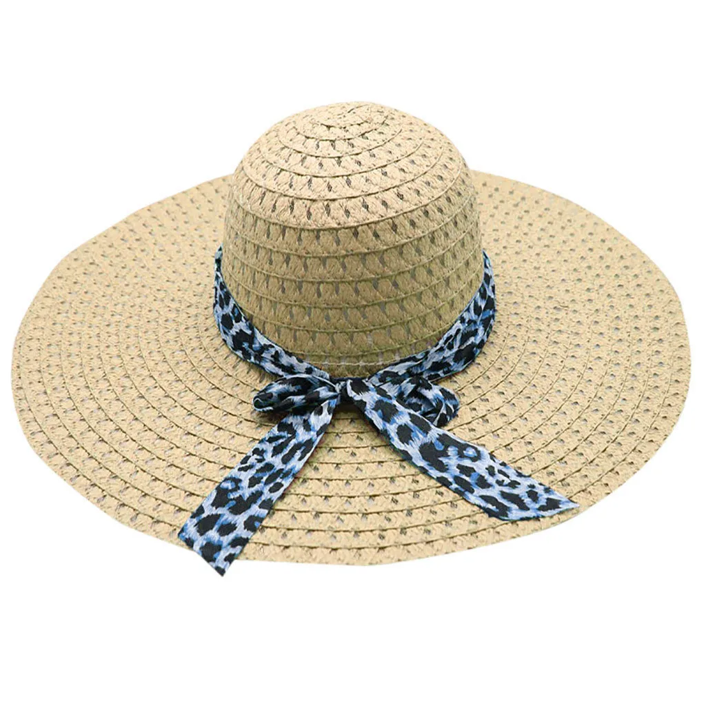 Женская соломенная шляпа с леопардовым принтом, широкополая шляпа от солнца с широкими полями