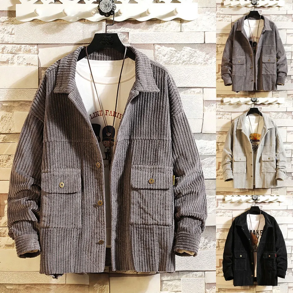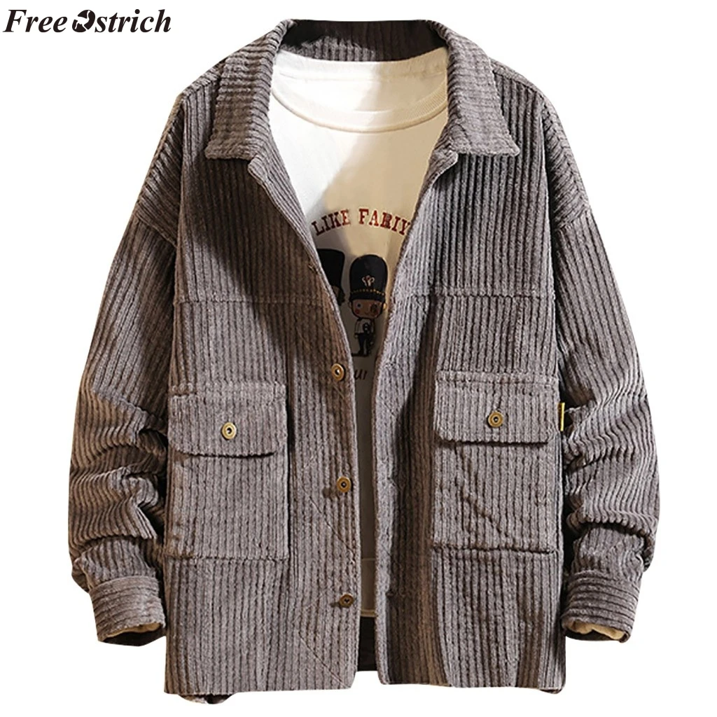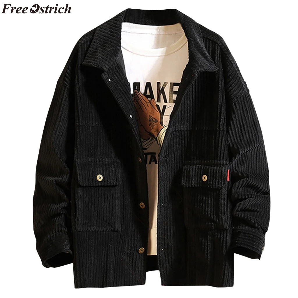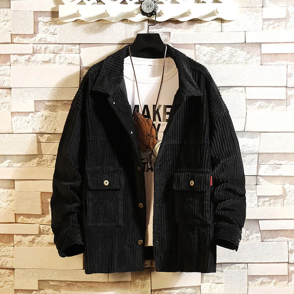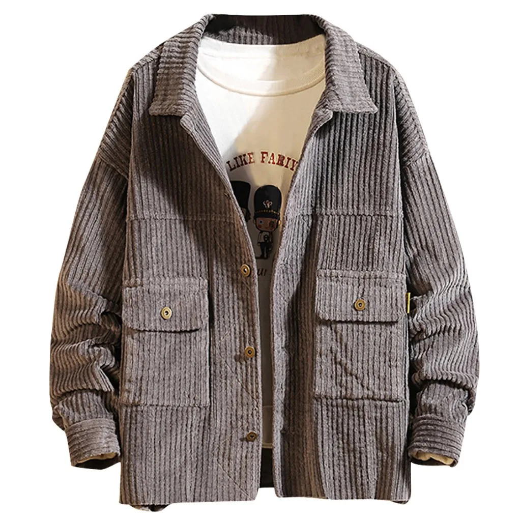Мужская короткая стильная Вельветовая однотонная теплая Повседневная куртка с длинными рукавами, блузка, Топ