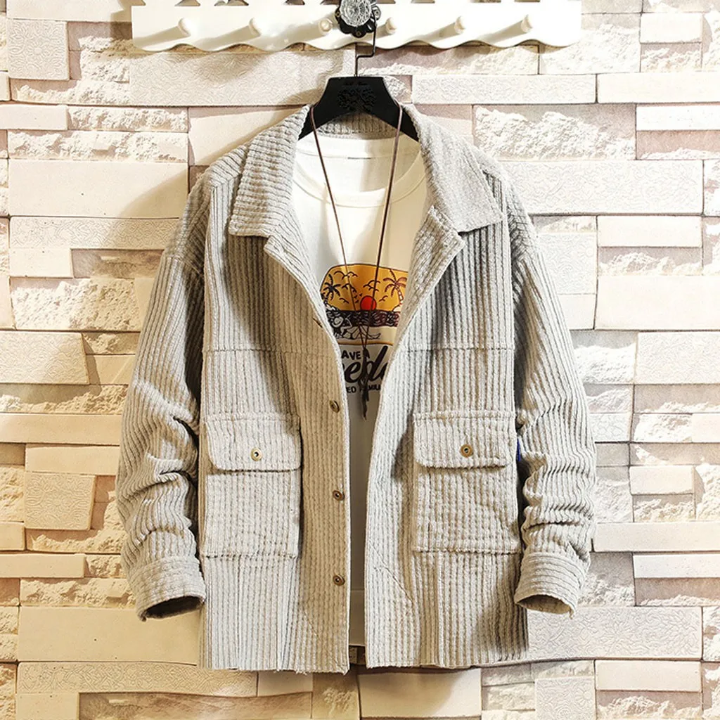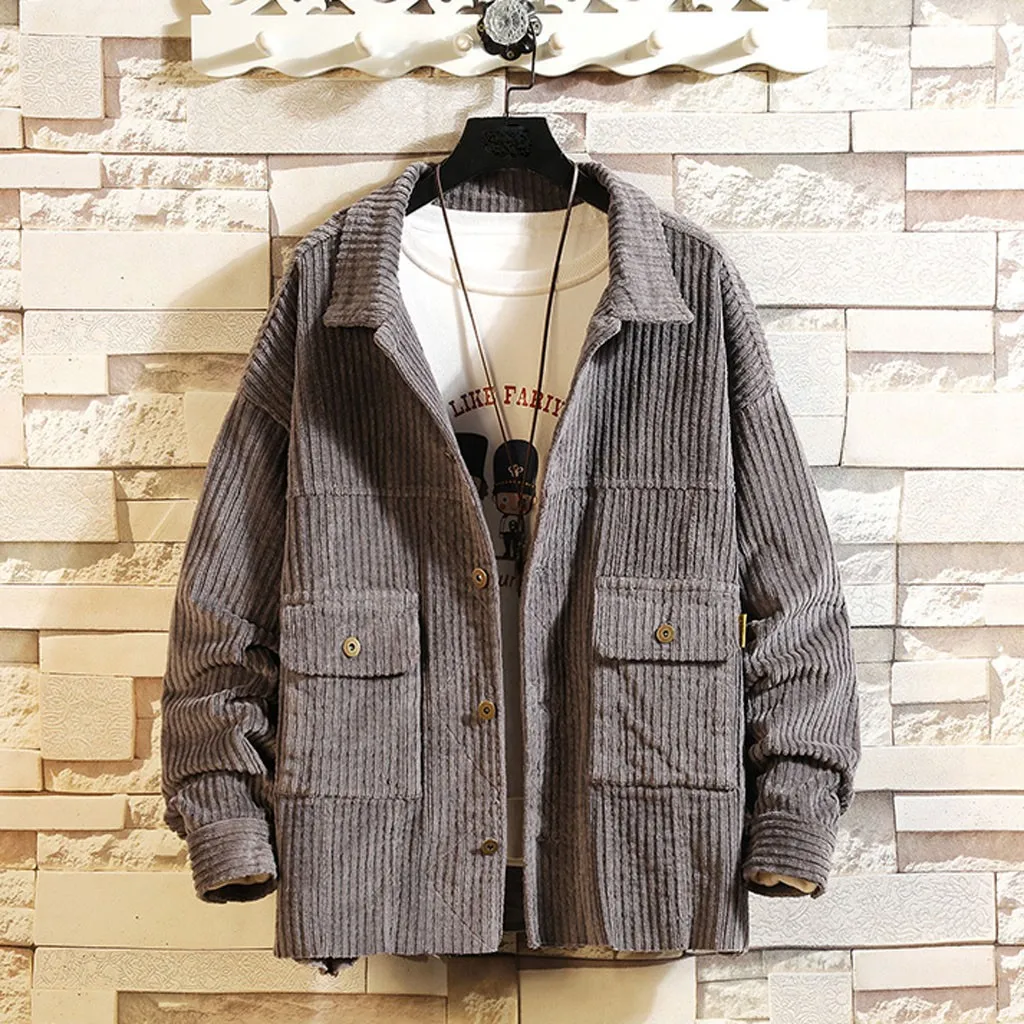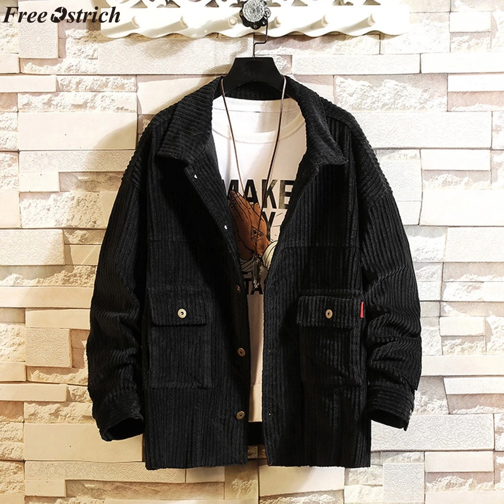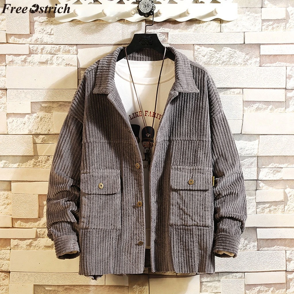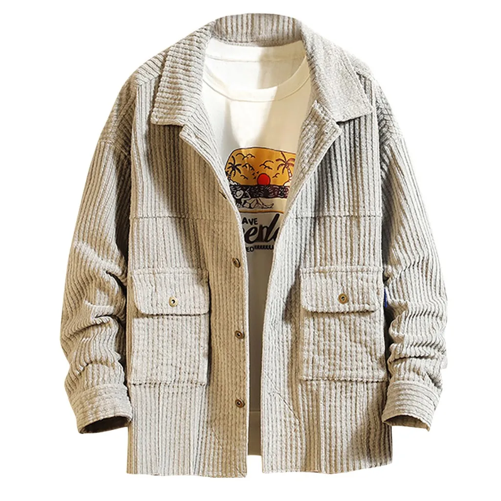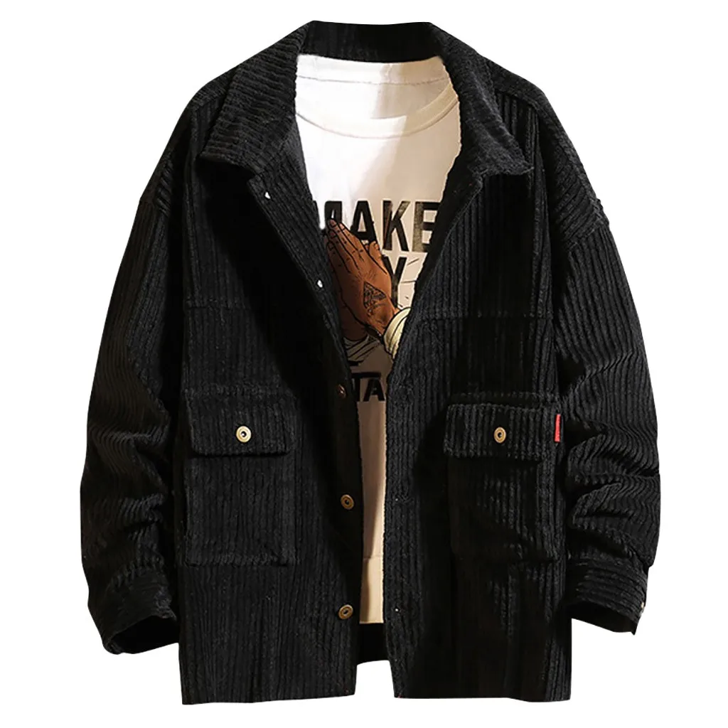 Мужская короткая стильная Вельветовая однотонная теплая Повседневная куртка с длинными рукавами, блузка, Топ