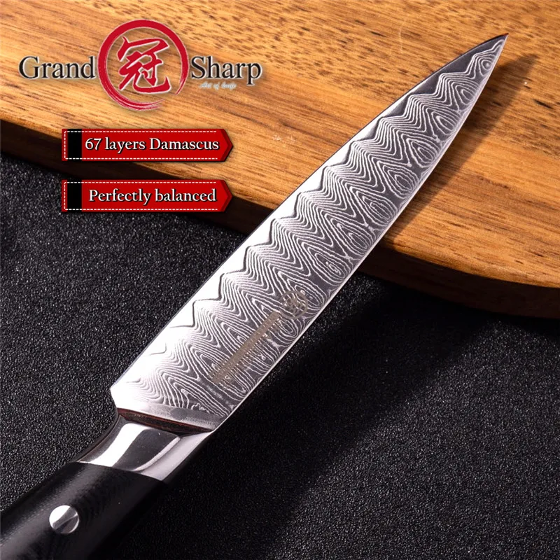 Универсальный нож для фруктов, пилинга и резки мелких предметов.Компактный, хороший нож подходит для пилинга фруктов, приготовления различных видов продуктов и точной работы.5 дюймовый мульти-назначения Ножи японской дамасской Нержавеющая сталь
