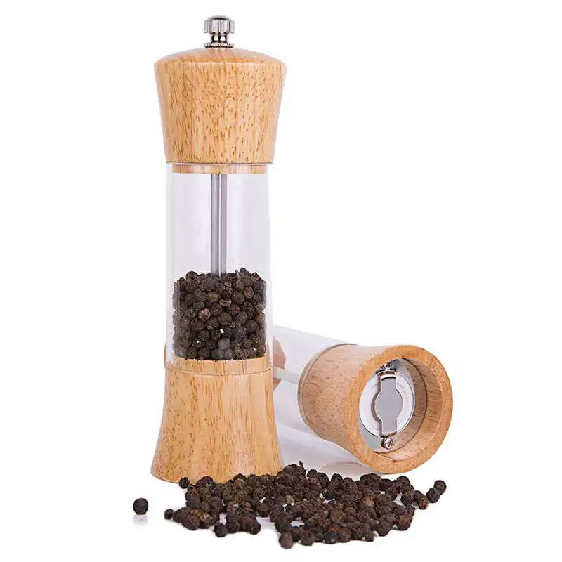 Деревянный измельчитель для перца имеет классический дизайн с видимым акриловым окном, прозрачный акриловый шейкер подчеркивает уровень вашей специи и легко заправляется, просто потяните на перцемолку сверху и Пополняйте выбранными вами Перчинки, и легко Наполняйте перцемолку, сняв верхнюю часть.