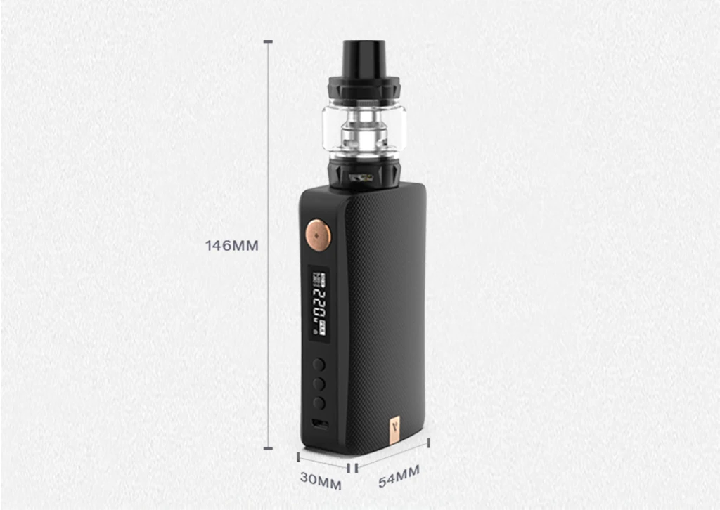 Kit Dimensions: 146 x 53 x 27mm Display: 0.91' OLED screen Capacity: 8ml Coil: QF Meshed 0.2om, QF Strips 0.15ohm Drip Tip: 810" Mode: Pulse Mode/Power ECO/Smart TC/DIY Battery: 2 x 18650 (Not Included) Power Range: 5-220W Charge current : 2.5A Resistance Range: 0.03~5Ω Thread: 510