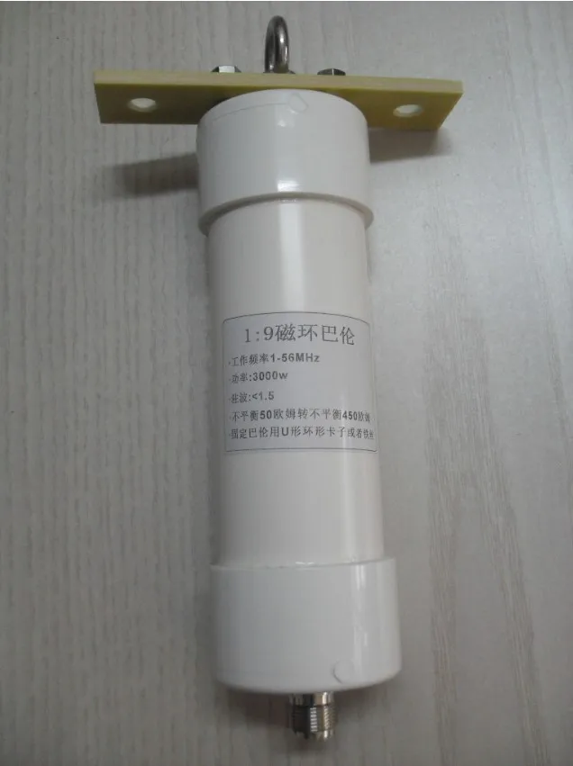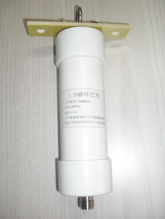 Этот балун использует высокочастотное магнитное кольцо (50 МГц) Основные параметры: 1. Коэффициент трансформации 1: 9 2. Входное сопротивление: 50 Ом (несимметричный) 3. Выходное сопротивление: 450 Ом (несимметричный) подходит для длинной коротковолновой антенны 4. Диапазон частот: 1-56 МГц 5. Стоячей волны: менее 1,5 6. Сопротивление мощности: 3000 Вт 7. Размеры: 57x205мм 8. Вес: 500 грамм 9. Поставляется с пластиной из эпоксидной смолы и кольцом из нержавеющей стали 304, с двумя медными носами для вибратор, удобно для пользователей