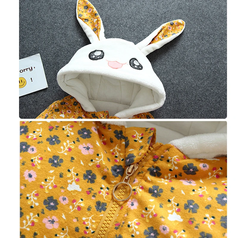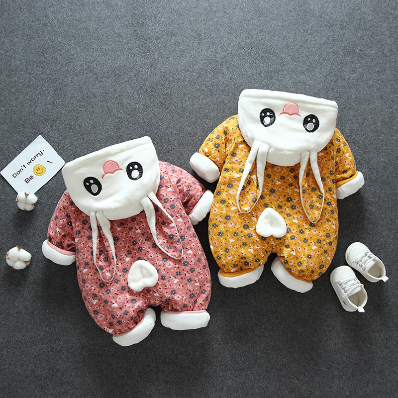 От 0 до 3 лет зимнее пальто в стиле Лолиты для маленьких девочек; Одежда для новорожденных с цветочным принтом; Утепленные комбинезоны с капюшоном; Зимняя одежда для малышей; Комбинезон