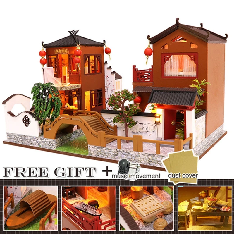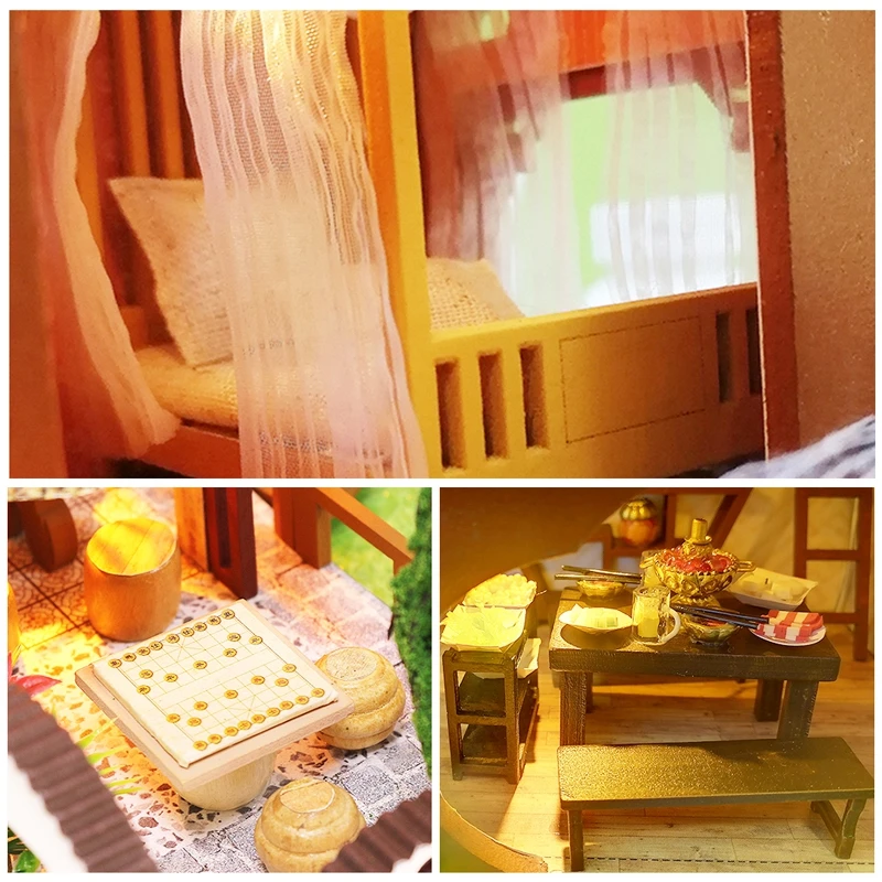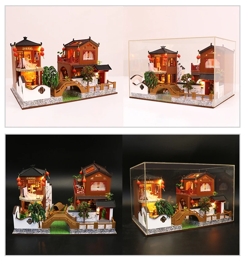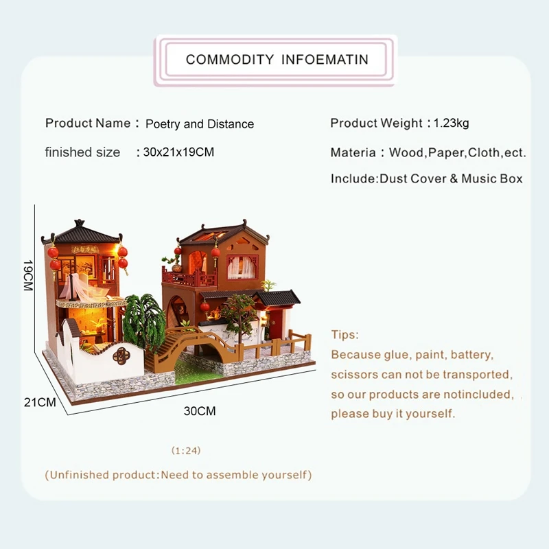 Вся мебель такая же, как показано на картинке Красивая упаковка подарочная коробка Размеры: 1. Масштаб: 1:12 Материал: Дерево, ткань, бумага, пластик, Инструкция: Инструкция на английском языке Обратите внимание: 1. Не включает инструменты, клей/аккумулятор. 2. Фото показывает готовые кукольные домики, но вы получаете запасные части, построенные самостоятельно! 3. Возраст: подходит для детей старше 12 лет