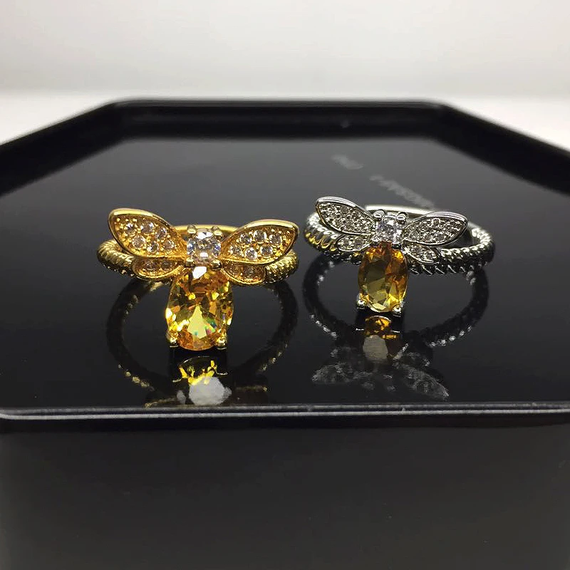 HuiSept модное Ювелирное кольцо из серебра 925 пробы для женщин цитрин драгоценный камень циркон пчела форма золотого цвета кольца для свадебной вечеринки оптовая продажа