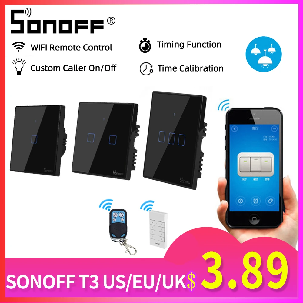 Умный переключатель SONOFF TX T3 US/EU/UK WiFi, 220 В, сенсорный выключатель 1/2 Gang RF 433 МГц, пульт дистанционного управления, умный настенный выключатель для Google Home