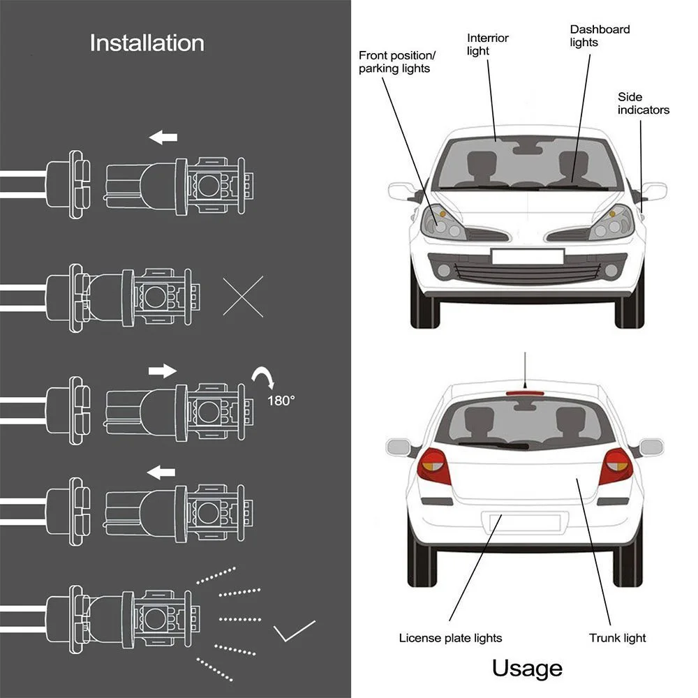 Dash & лампа приборной панели, карта света, боковой габаритный фонарь, вежливое освещение, парковочный свет, задний фонарь, центральный стоп-сигнал, лампочка багажного отделения, интерьерная дверная лампочка/купольная лампочка/парковочная лампочка и т. д.