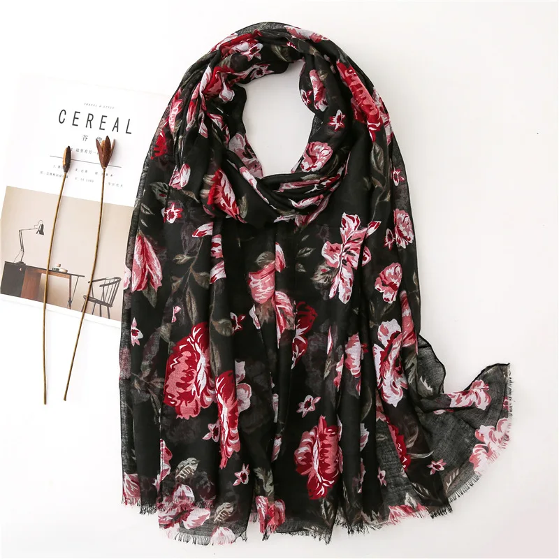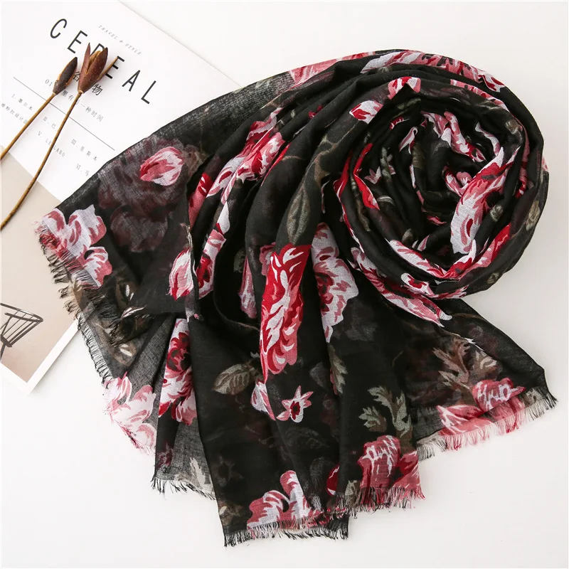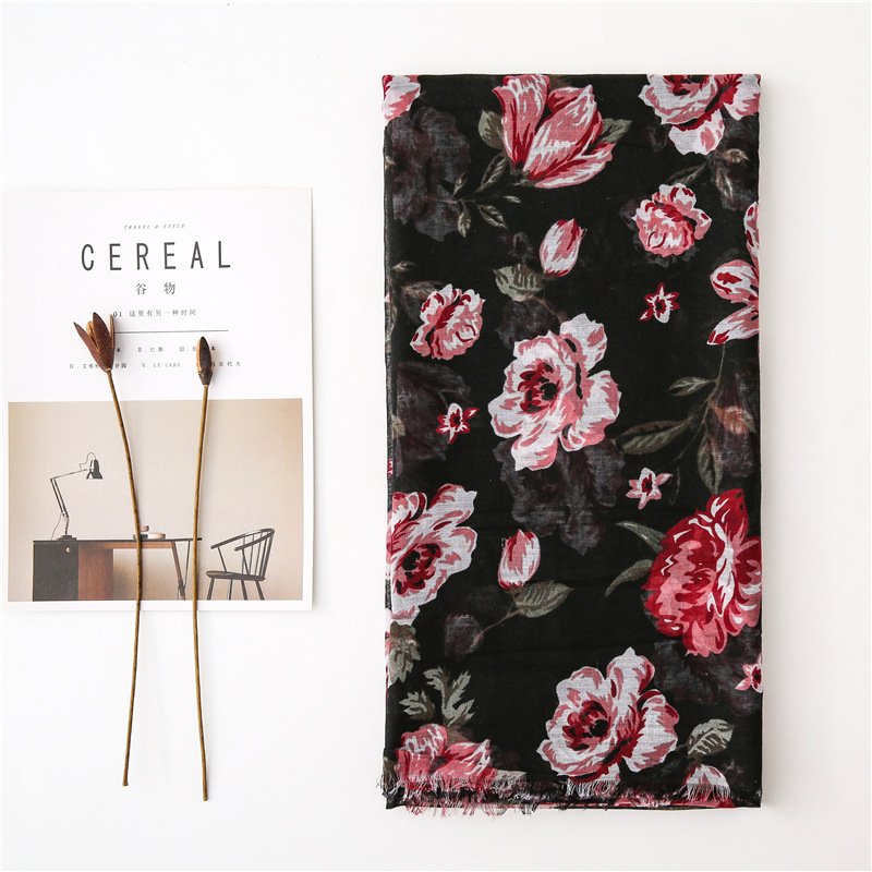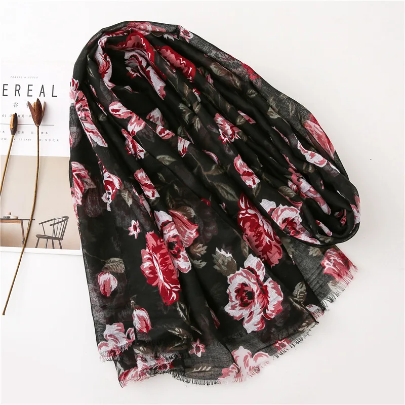 Женский шарф в винтажном стиле, цветочный Мак, вискозные шарфы, новый дизайн, шали и палантины, Дамская бахрома, Пашмина, глушитель, хиджаб, фуляр