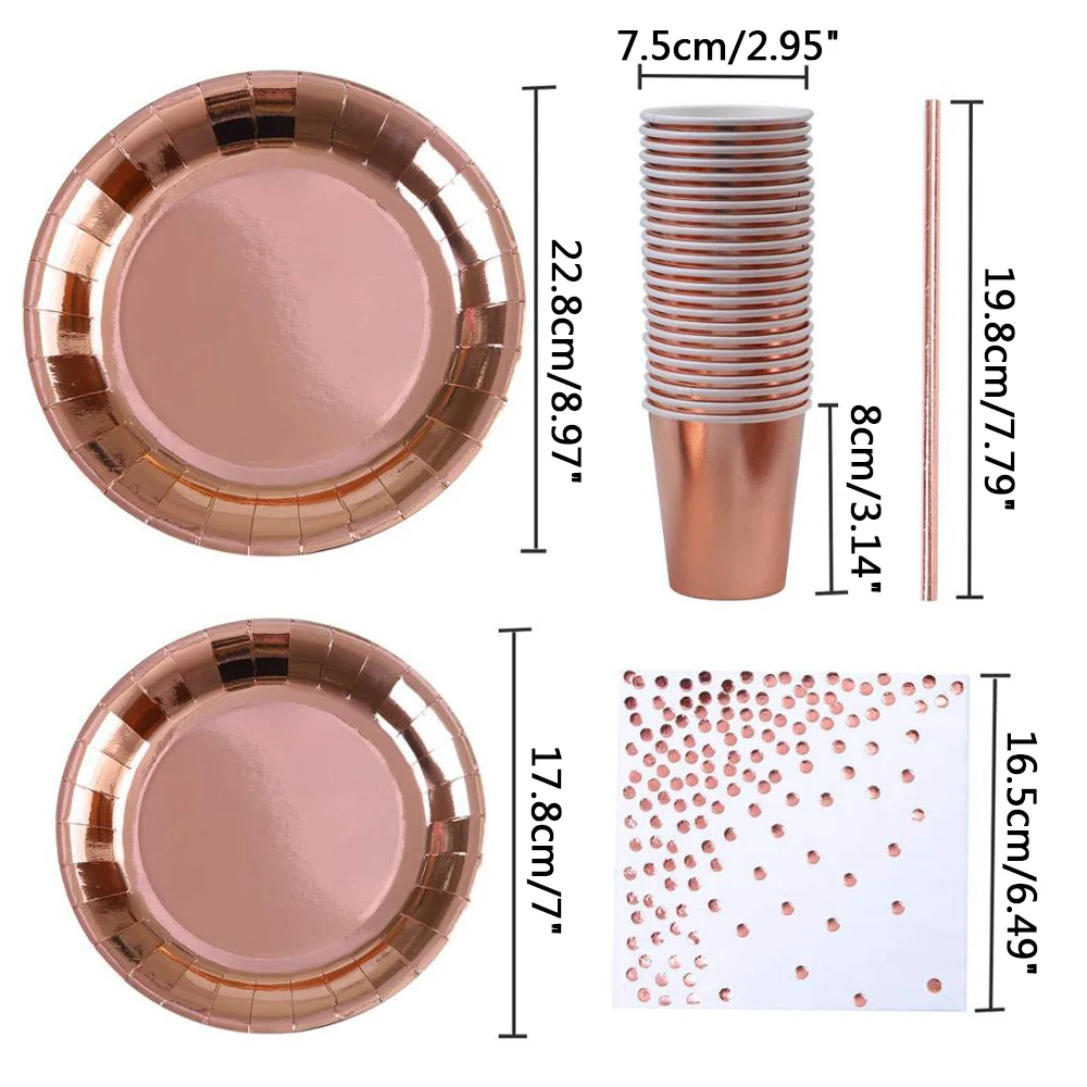 Красивый дизайн: бумажные столовые принадлежности изготовлены из розового золота, элегантно и красиво сочетаются с вашим украшением и создают впечатление на ваших гостей, что делает ваши вечерние вещи запоминающимися и впечатляющими