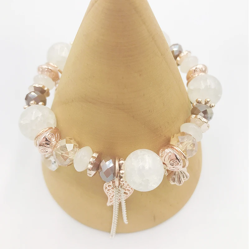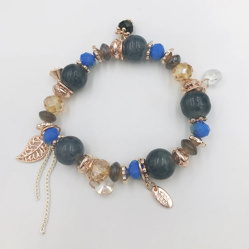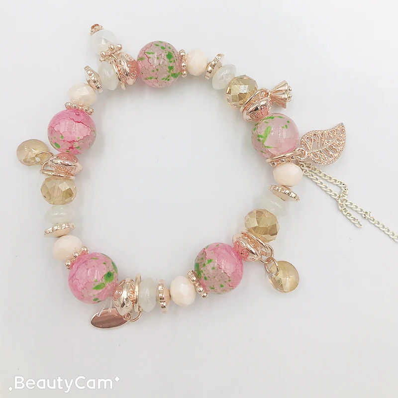 HanJing Женский эластичный стрейч модный поп-ювелирный подарок Шарм Милая Мода Листья Кристалл бисер Бисер Плетеный браслет для женщин