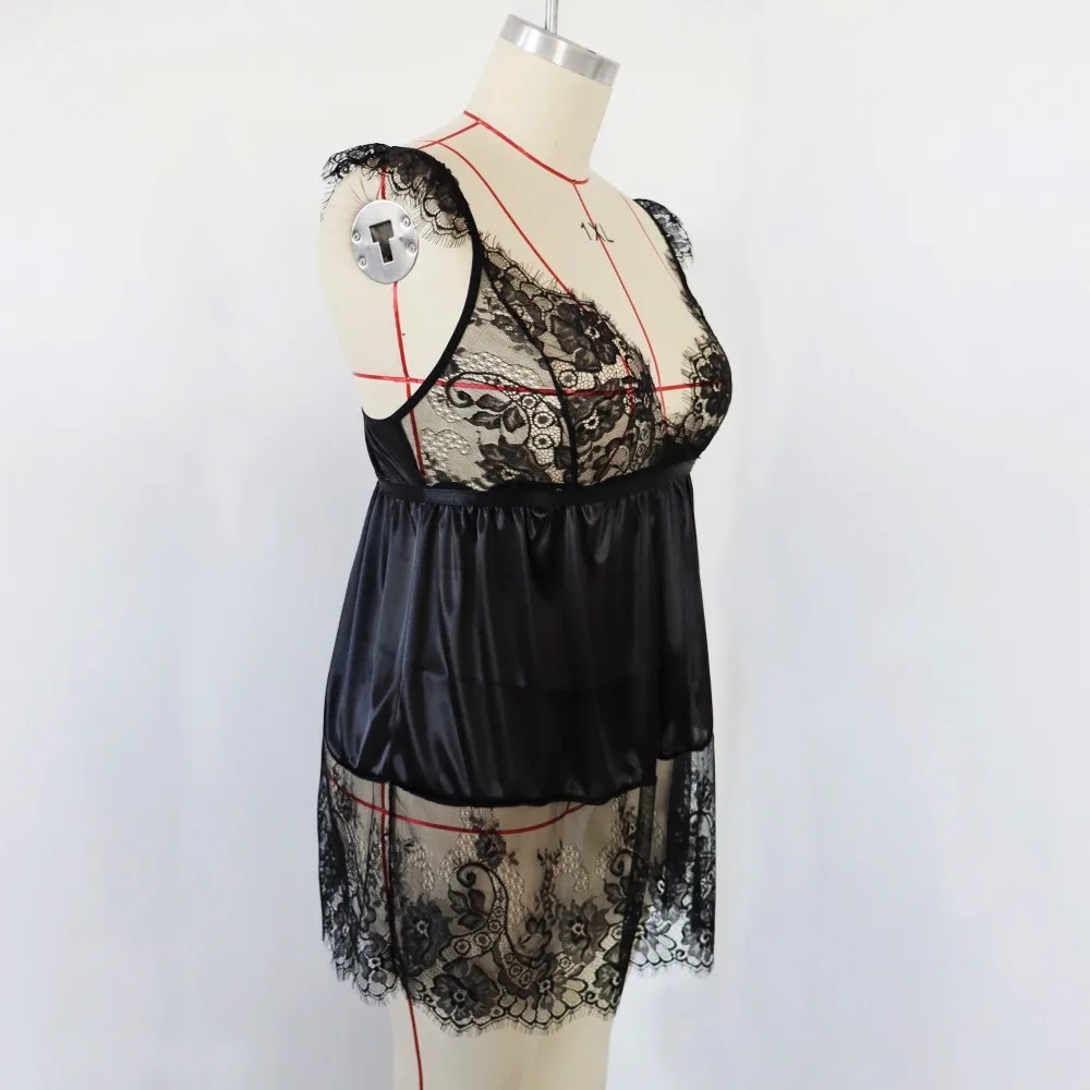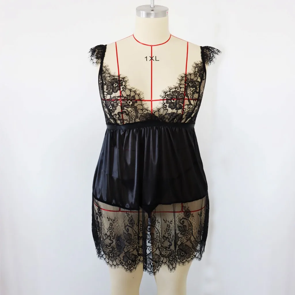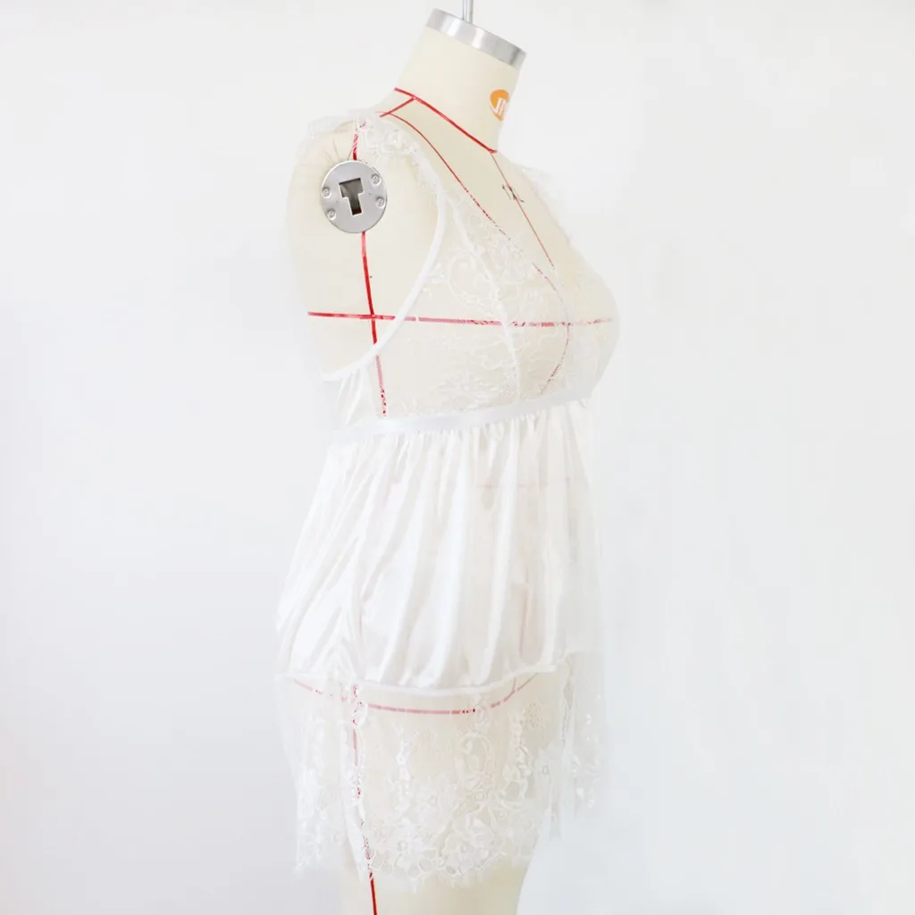 Новый женский кружевной комплект с v-образным вырезом большого размера, сексуальное беспроводное нижнее белье, ночная рубашка