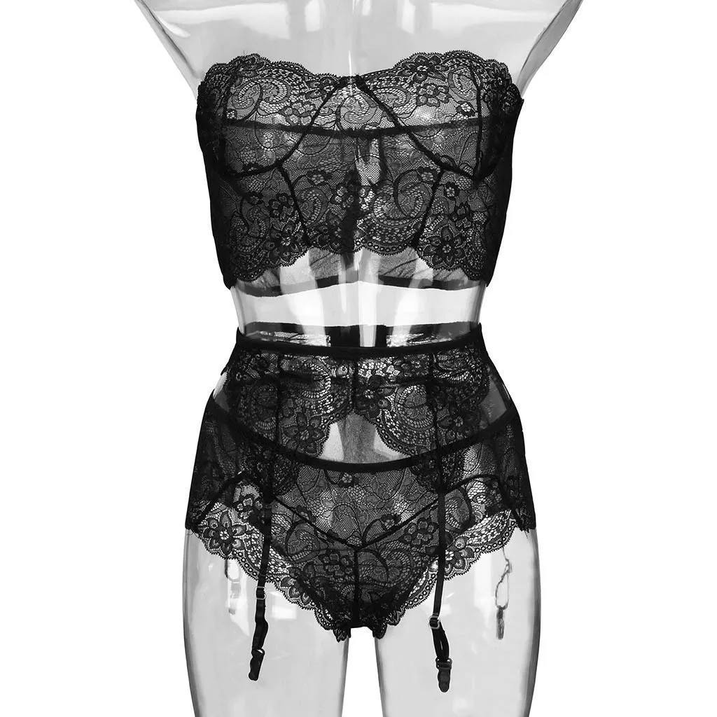 Комплект кружевного нижнего белья, бюстгальтер без косточек с поясом с подвязками, стринги, нижнее белье для женщин, женское нижнее белье, сексуальный комплект нижнего белья, женское белье