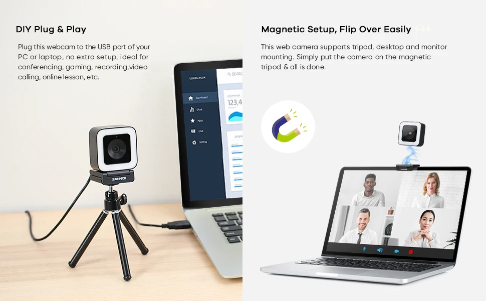[Веб-камера с затвором] закройте объектив веб-камеры ПК магнитным затвором, чтобы защитить вашу конфиденциальность и защитить объектив от пыли или мусора. В комплект входит регулируемый кронштейн для удобного размещения компьютерной камеры.