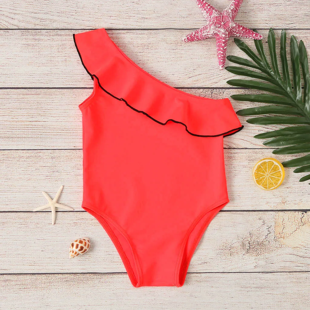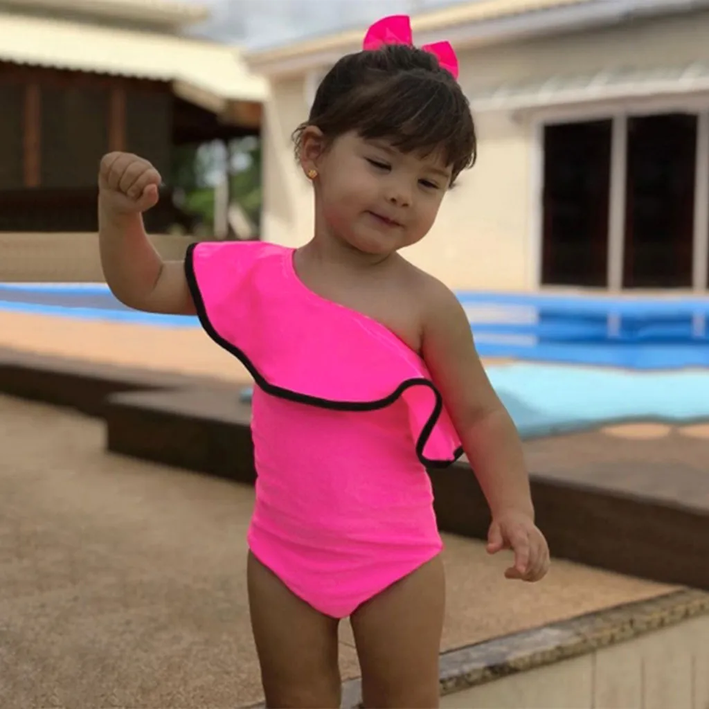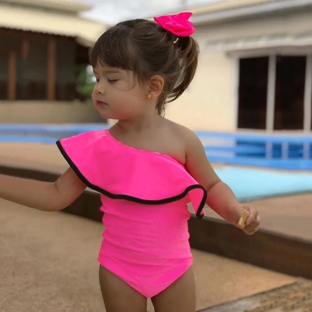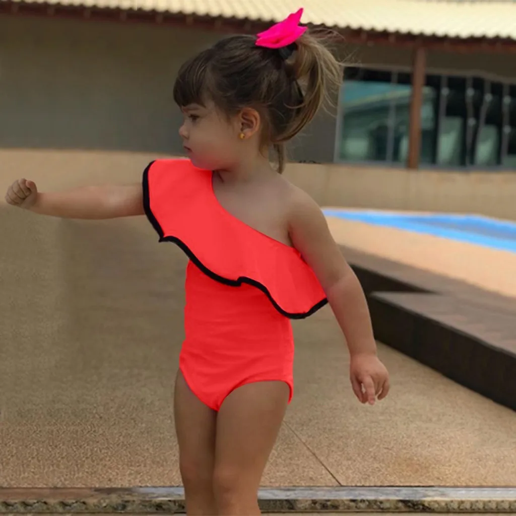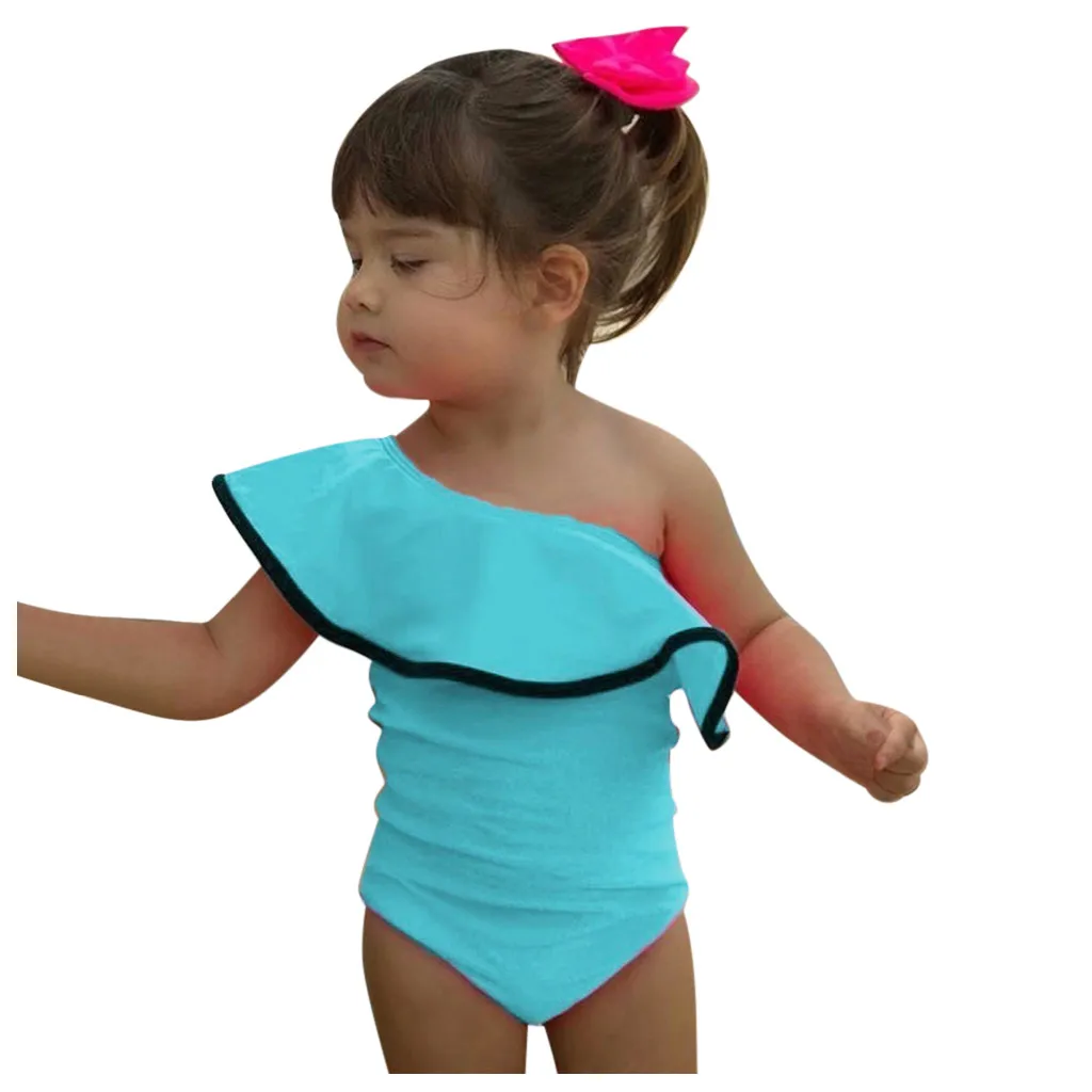 Модный детский купальник; Купалник; Одежда для купания для маленьких девочекЛетний Цельный купальник с рюшами; Комбинезон; Купальный костюм; Бесплатная доставка