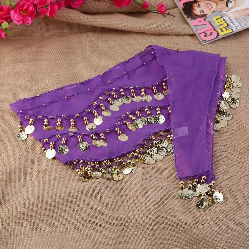 Шифоновый шарф для танца живота 3 ряда 128 золотые монеты для индийского беллиданса, шарфы, юбка и пояс, комплект в стиле «хип-Обернутая Талия цепи Быстрая бесплатная доставка