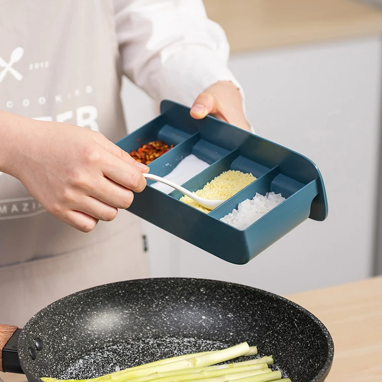 -4. Четырехячеечный соединенный герметичный ящик для приправ легко снять в ряд, а плотные швы не легко промокают.