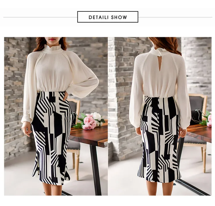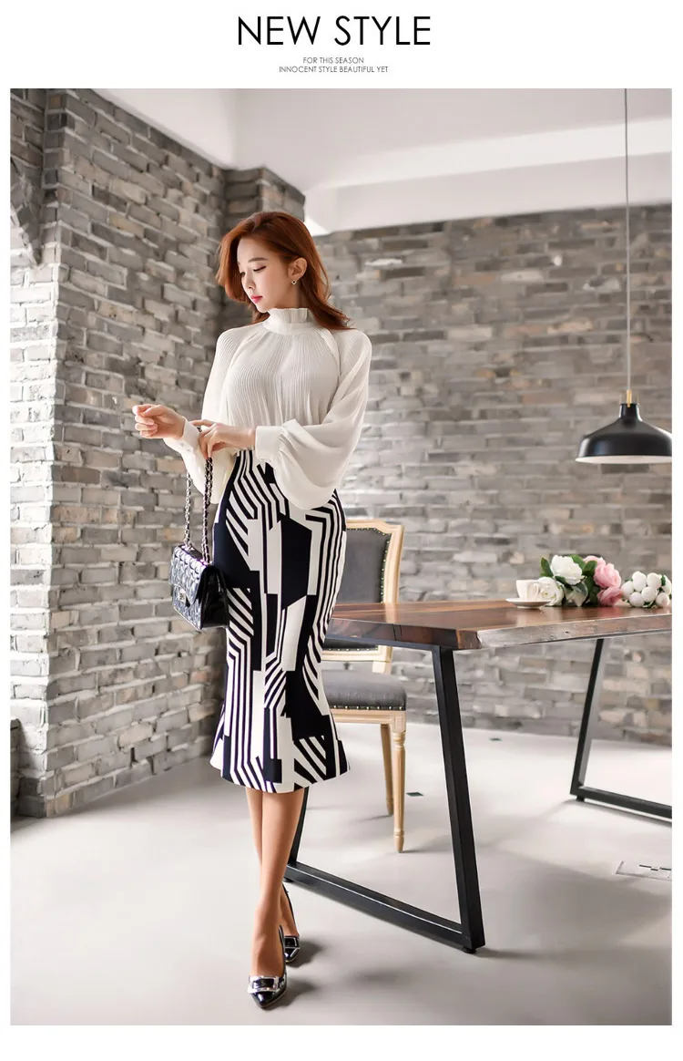 Название: весенняя женская плиссированная Блузка + костюм с юбкой