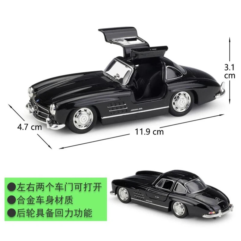 Цвет: черный Материал: сплав и АБС Функция: коллекция, подарок Масштаб: 1:36 Размеры: около 11,9 см * 4,7 см * 3,1 см Упаковка: модель автомобиля из сплава в масштабе 1/36