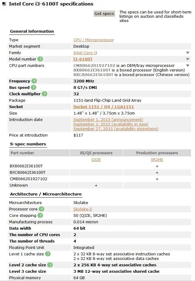 Процессор Intel Core i3-6100T двухъядерный 3,2 ГГц 3 Мб Кэш i3 6100T LGA 1151 35 Вт десктопный процессор протестирован 100% рабочий