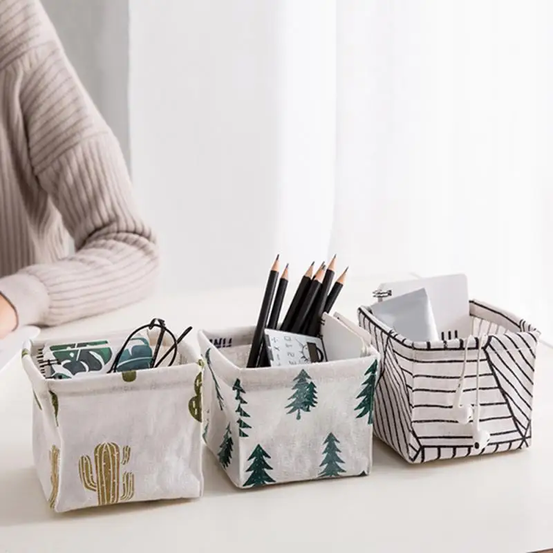 Хлопковая льняная настольная складная коробка для хранения, корзина для игрушек, настольный контейнер, органайзер для макияжа, чехол корзина для хранения мелочей, украшение для дома JE
