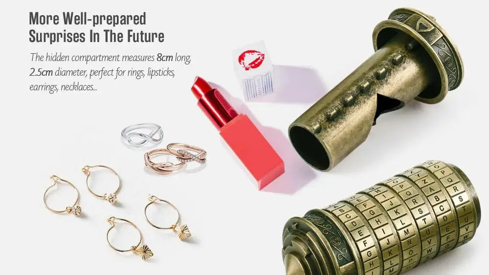 Сделано в соответствии с рукописью, cryptex поставляется со сменной комбинацией открывания 6 букв.