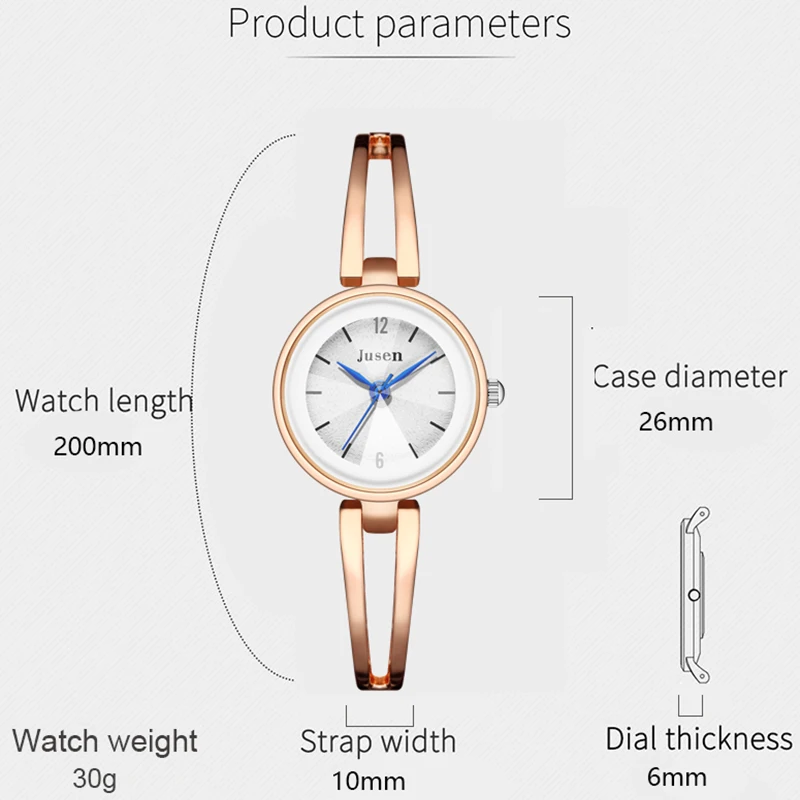 Dial Diameter:26mm Movement: Quartz Case Material: Alloy Band Material Type: Stainless Steel Strap Case Shape: Round Case Thickness: 6mm Style: Fashion & Casual Clasp Type: Buckle Band Length: 20inch Band Width: 10mm Package list: 1*watch Notice: Due to the different monitor and light effect, the actual color maybe a slight different from the picture color. Please allow 0.5-1cm differs due to manual measurement .